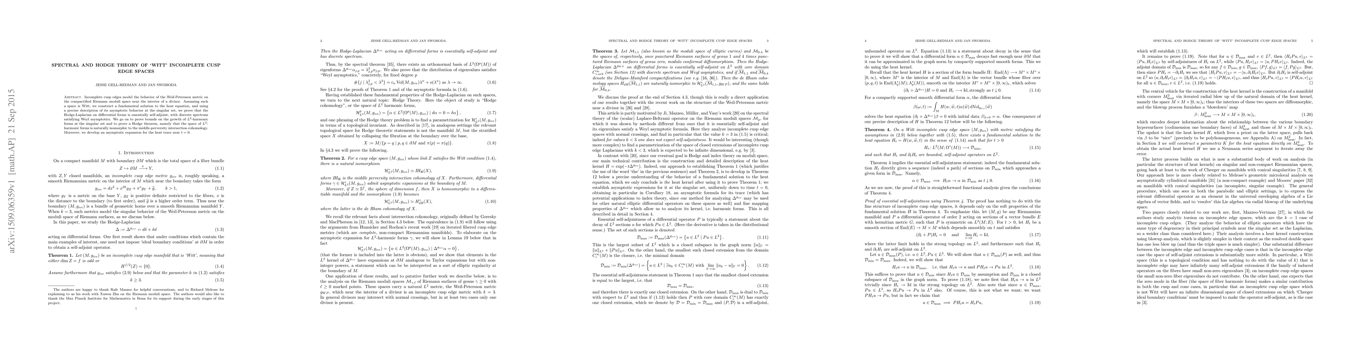 Incomplete cusp edges model the behavior of the Weil-Petersson metric on the compactified Riemann moduli space near the interior of a divisor. Assuming such a space is Witt, we construct a fundamental solution to the heat equation, and using a precise description of its asymptotic behavior at the singular set, we prove that the Hodge-Laplacian on differential forms is essentially self-adjoint, with discrete spectrum satisfying Weyl asymptotics. We go on to prove bounds on the growth of $L^2$-harmonic forms at the singular set and to prove a Hodge theorem, namely that the space of $L^2$-harmonic forms is naturally isomorphic to the middle-perversity intersection cohomology. Moreover, we develop an asymptotic expansion for the heat trace near $t = 0$.