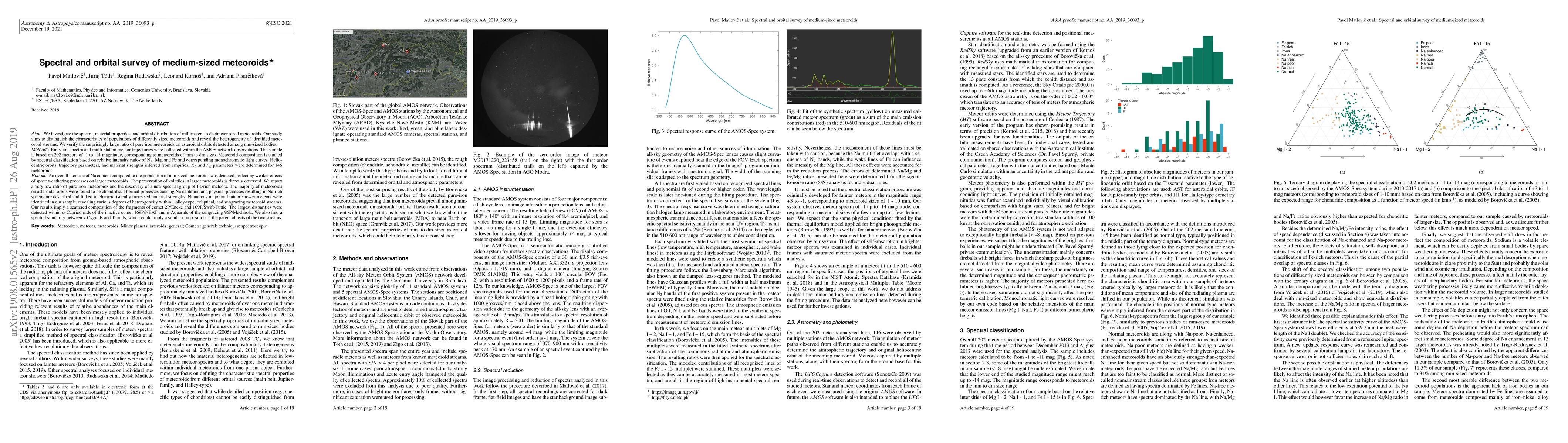 This study analyzes the spectra, material properties, and orbital distribution of millimeter- to decimeter-sized meteoroids, revealing a surprising abundance of pure iron meteoroids on asteroidal orbits among smaller bodies. The research identifies a new spectral group of Fe-rich meteors and highlights the heterogeneity within various meteoroid streams, suggesting a scattered composition of fragments from comets 2P/Encke and 109P/Swift-Tuttle.