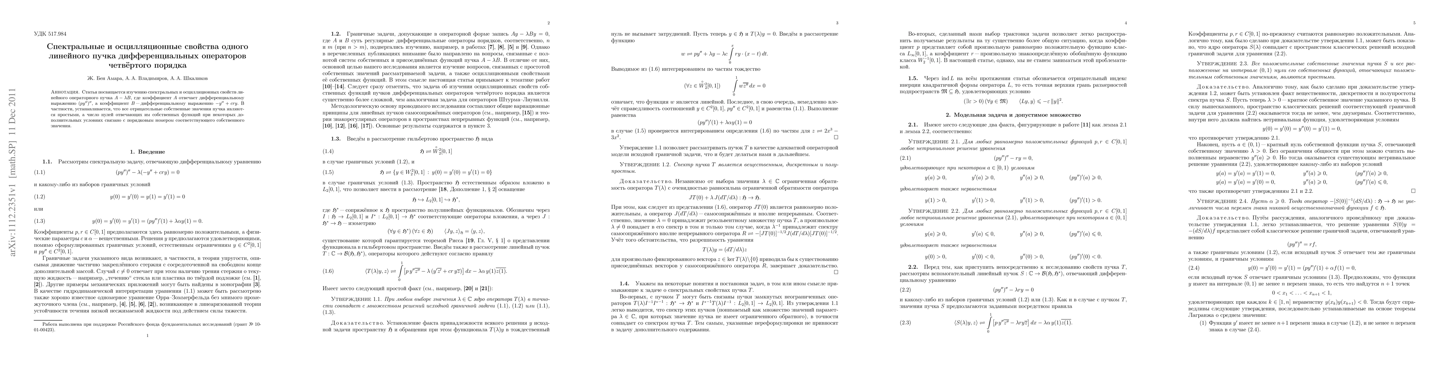 The present paper deals with the spectral and the oscillation properties of a linear pencil $A-\lambda B$. Here $A$ and $B$ are linear operators generated by the differential expressions $(py")"$ and $-y"+ cry$, respectively. In particular, it is shown that the negative eigenvalues of this problem are simple and the corresponding eigenfunctions $y_{-n}$ have $n-1$ zeros in $(0,1)$.