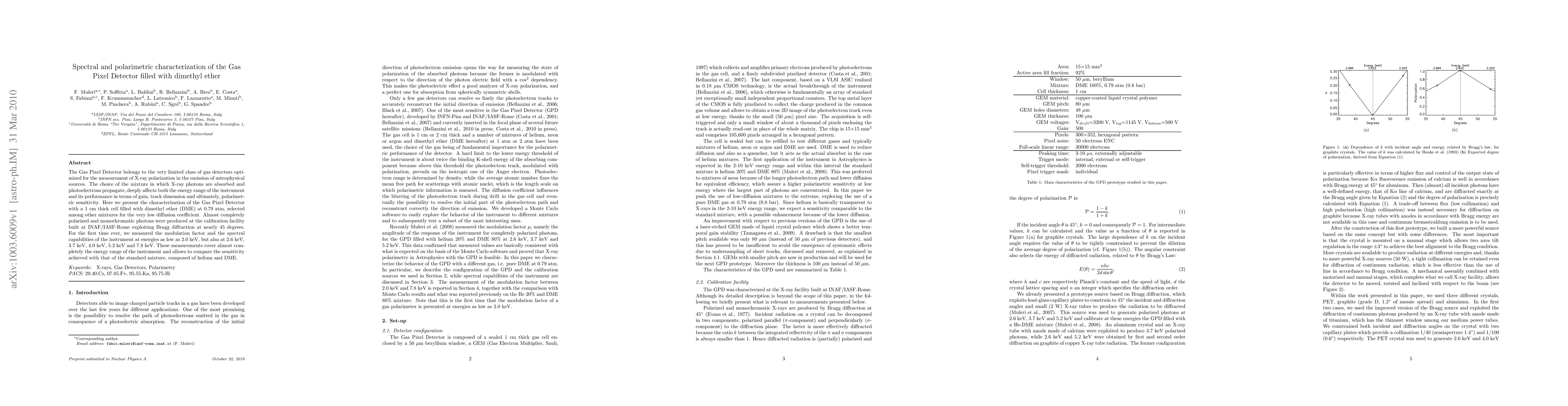 The Gas Pixel Detector belongs to the very limited class of gas detectors optimized for the measurement of X-ray polarization in the emission of astrophysical sources. The choice of the mixture in which X-ray photons are absorbed and photoelectrons propagate, deeply affects both the energy range of the instrument and its performance in terms of gain, track dimension and ultimately, polarimetric sensitivity. Here we present the characterization of the Gas Pixel Detector with a 1 cm thick cell filled with dimethyl ether (DME) at 0.79 atm, selected among other mixtures for the very low diffusion coefficient. Almost completely polarized and monochromatic photons were produced at the calibration facility built at INAF/IASF-Rome exploiting Bragg diffraction at nearly 45 degrees. For the first time ever, we measured the modulation factor and the spectral capabilities of the instrument at energies as low as 2.0 keV, but also at 2.6 keV, 3.7 keV, 4.0 keV, 5.2 keV and 7.8 keV. These measurements cover almost completely the energy range of the instrument and allows to compare the sensitivity achieved with that of the standard mixture, composed of helium and DME.