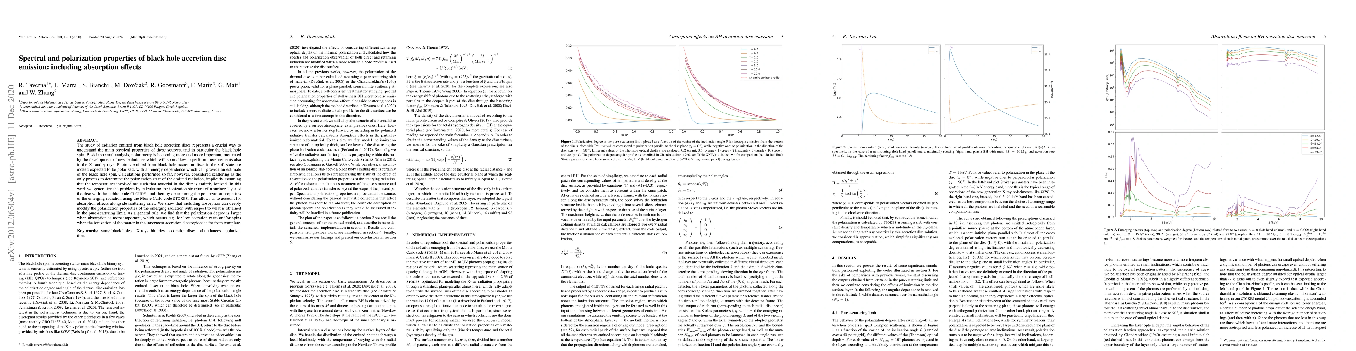 This paper investigates the spectral and polarization properties of black hole accretion disc emission, including absorption effects, using the CLOUDY code for ionization structure and the STOKES Monte Carlo code for polarization. It finds that accounting for absorption alongside scattering significantly alters the polarization properties, with higher polarization degrees observed under conditions of greater absorption.