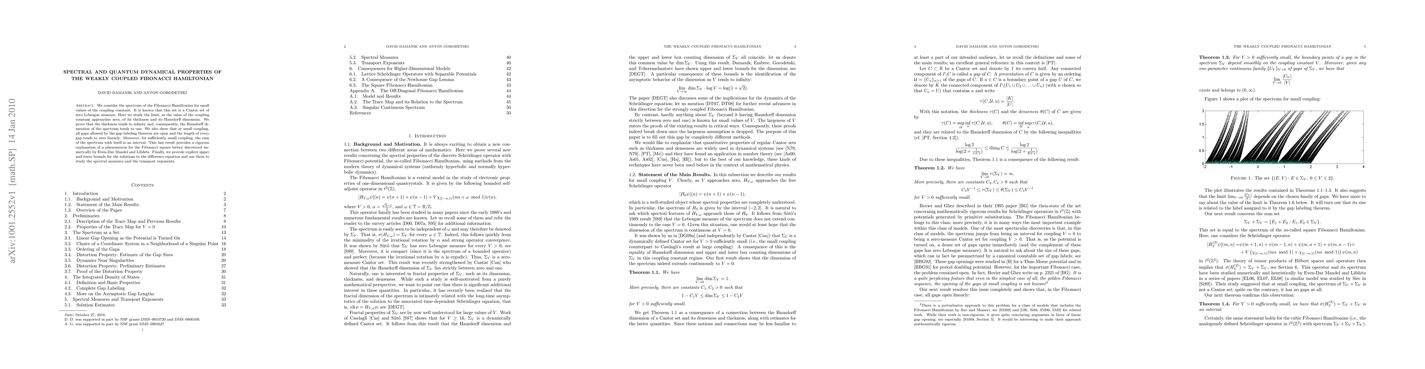 This paper investigates the spectral properties of the Fibonacci Hamiltonian as the coupling constant approaches zero, demonstrating that the spectrum's thickness tends to infinity and its Hausdorff dimension to one. It also reveals that all gaps become open and their lengths shrink linearly, and the sum of the spectrum forms an interval for sufficiently small coupling.