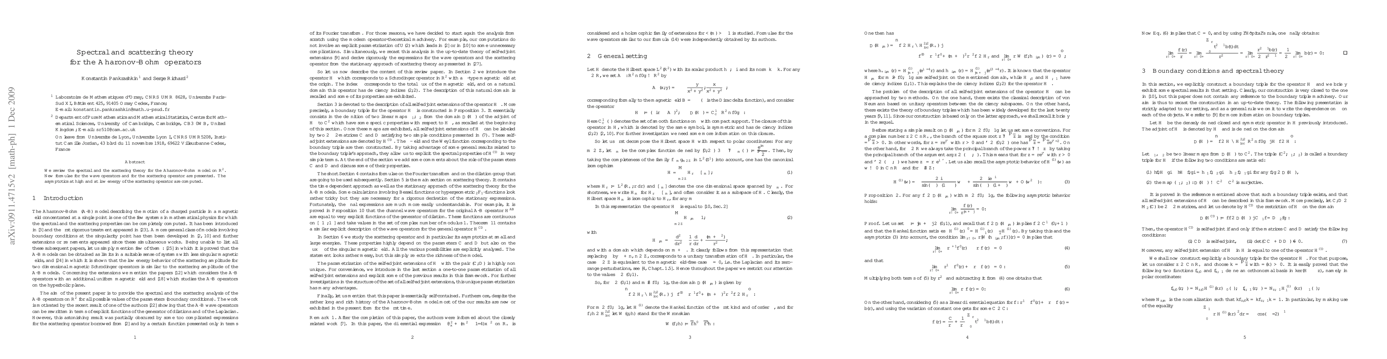 This paper reviews spectral and scattering theory for the Aharonov-Bohm operators on R^2, presenting new formulae for wave and scattering operators, and computes their asymptotics at varying energies.