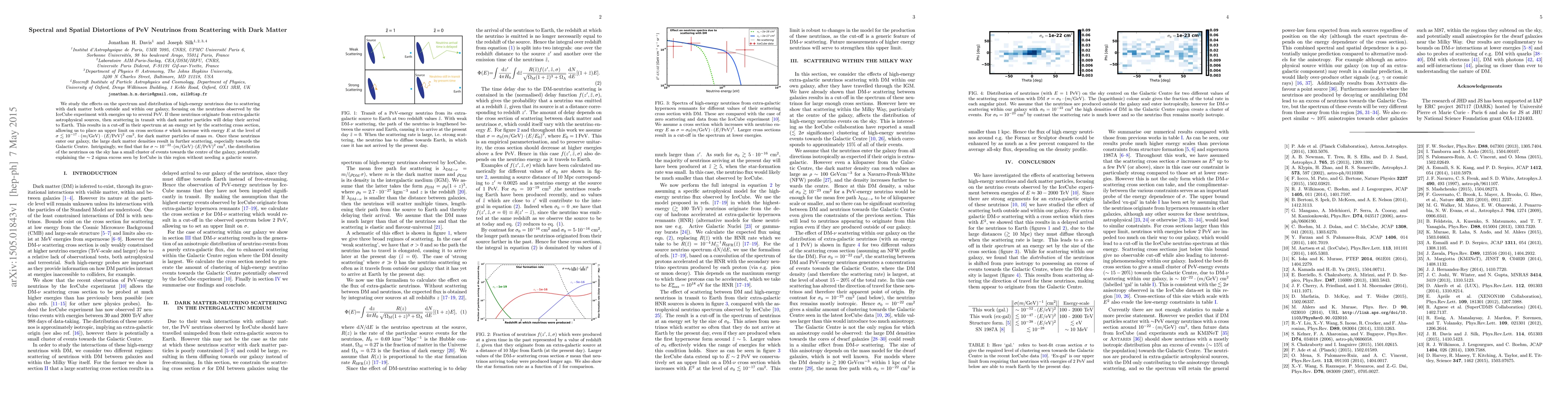 This paper investigates the spectral and spatial distortions of PeV neutrinos caused by scattering with dark matter, both extra-galactic and within our galaxy. It finds that scattering delays high-energy neutrino arrival times, setting an upper limit on the scattering cross section, and suggests that specific cross sections could explain the observed neutrino excess towards the Galactic Centre without requiring a galactic source.