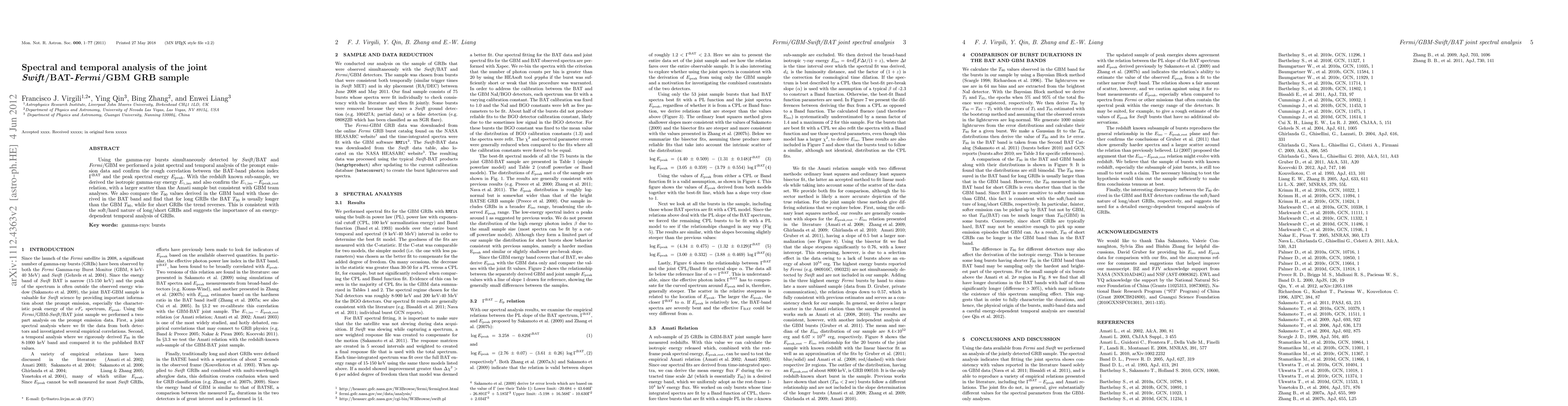 This paper conducts a joint spectral and temporal analysis of gamma-ray bursts detected by Swift/BAT and Fermi/GBM, confirming correlations between spectral indices and peak energies. It also highlights differences in T_90 durations between BAT and GBM bands for long and short GRBs, suggesting energy-dependent temporal behaviors.
