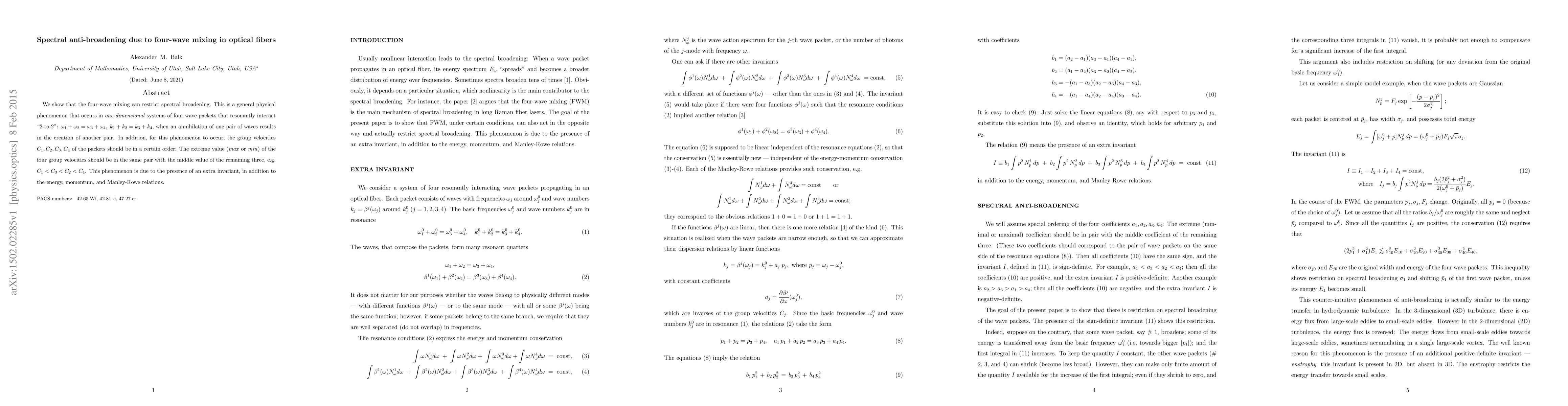 We show that the four-wave mixing can restrict spectral broadening. This is a