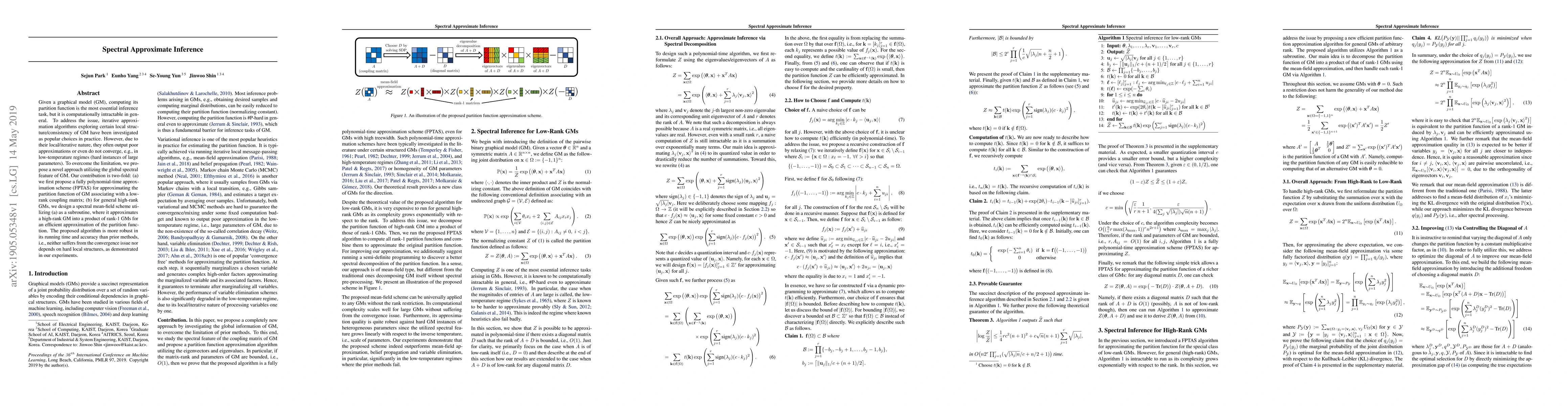 Given a graphical model (GM), computing its partition function is the most essential inference task, but it is computationally intractable in general. To address the issue, iterative approximation algorithms exploring certain local structure/consistency of GM have been investigated as popular choices in practice. However, due to their local/iterative nature, they often output poor approximations or even do not converge, e.g., in low-temperature regimes (hard instances of large parameters). To overcome the limitation, we propose a novel approach utilizing the global spectral feature of GM. Our contribution is two-fold: (a) we first propose a fully polynomial-time approximation scheme (FPTAS) for approximating the partition function of GM associating with a low-rank coupling matrix; (b) for general high-rank GMs, we design a spectral mean-field scheme utilizing (a) as a subroutine, where it approximates a high-rank GM into a product of rank-1 GMs for an efficient approximation of the partition function. The proposed algorithm is more robust in its running time and accuracy than prior methods, i.e., neither suffers from the convergence issue nor depends on hard local structures, as demonstrated in our experiments.
