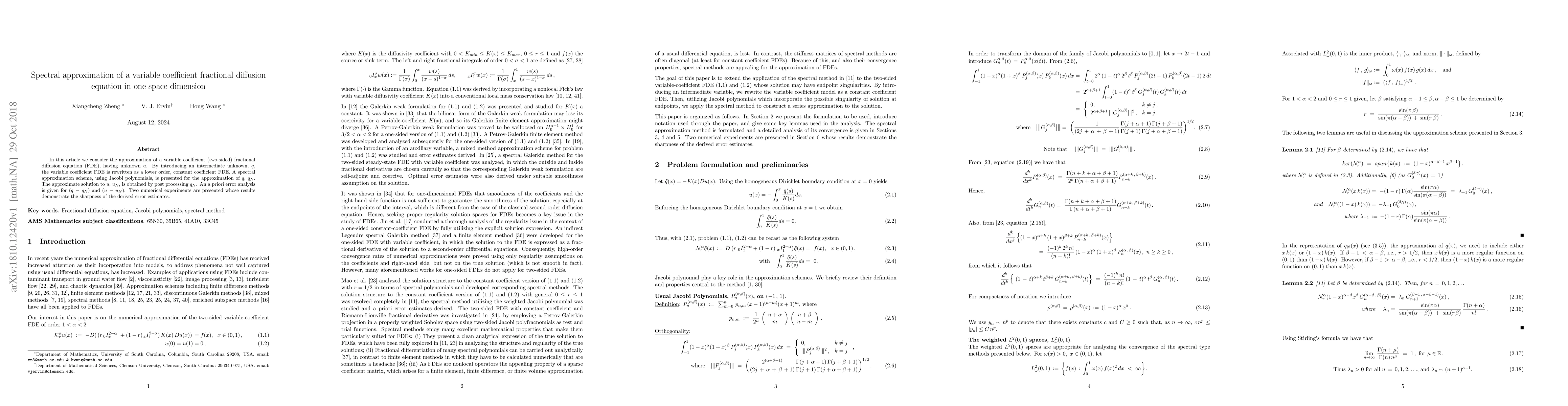 This paper proposes a spectral approximation scheme using Jacobi polynomials to solve a variable coefficient fractional diffusion equation by rewriting it as a lower-order constant coefficient equation. The method provides an a priori error analysis and demonstrates the accuracy of the approximation through numerical experiments.