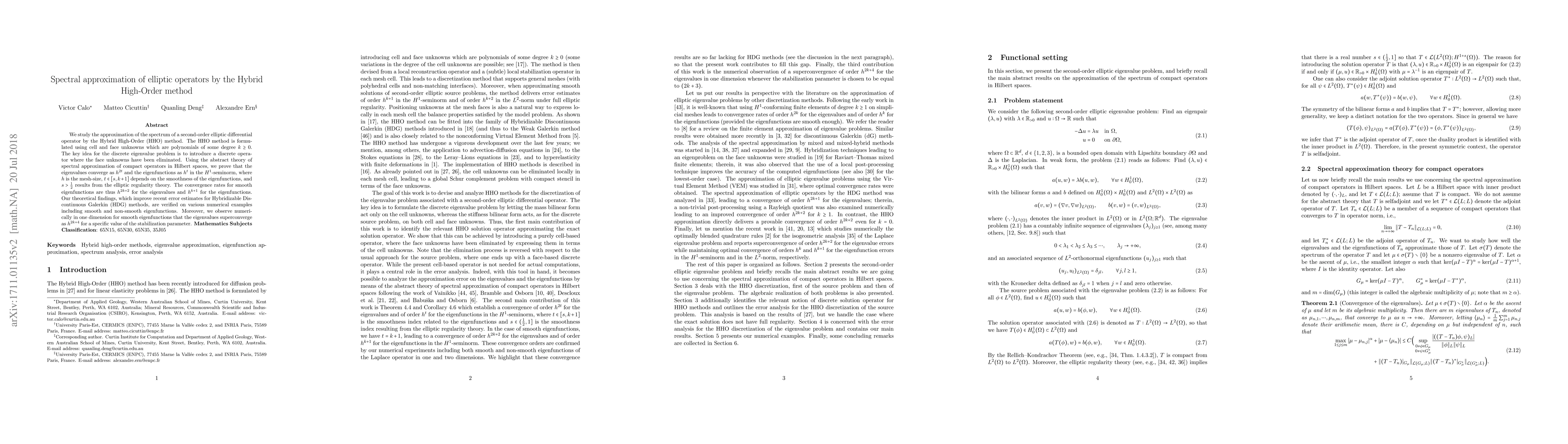 We study the approximation of the spectrum of a second-order elliptic differential operator by the Hybrid High-Order (HHO) method. The HHO method is formulated using cell and face unknowns which are polynomials of some degree $k\geq0$. The key idea for the discrete eigenvalue problem is to introduce a discrete operator where the face unknowns have been eliminated. Using the abstract theory of spectral approximation of compact operators in Hilbert spaces, we prove that the eigenvalues converge as $h^{2t}$ and the eigenfunctions as $h^{t}$ in the $H^1$-seminorm, where $h$ is the mesh-size, $t\in [s,k+1]$ depends on the smoothness of the eigenfunctions, and $s>\frac12$ results from the elliptic regularity theory. The convergence rates for smooth eigenfunctions are thus $h^{2k+2}$ for the eigenvalues and $h^{k+1}$ for the eigenfunctions. Our theoretical findings, which improve recent error estimates for Hybridizable Discontinuous Galerkin (HDG) methods, are verified on various numerical examples including smooth and non-smooth eigenfunctions. Moreover, we observe numerically in one dimension for smooth eigenfunctions that the eigenvalues superconverge as $h^{2k+4}$ for a specific value of the stabilization parameter.