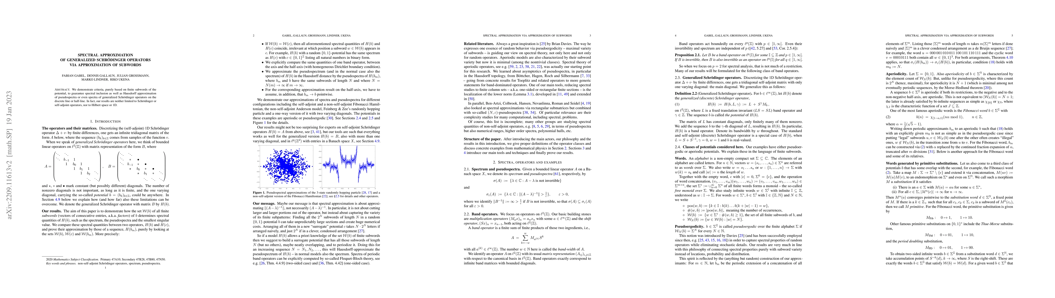 This paper provides criteria for spectral approximation of generalized Schrödinger operators based on finite subwords of their potentials, ensuring spectral inclusion and Hausdorff approximation, applicable beyond just Schrödinger or self-adjoint operators and in settings beyond 1D Hilbert spaces.