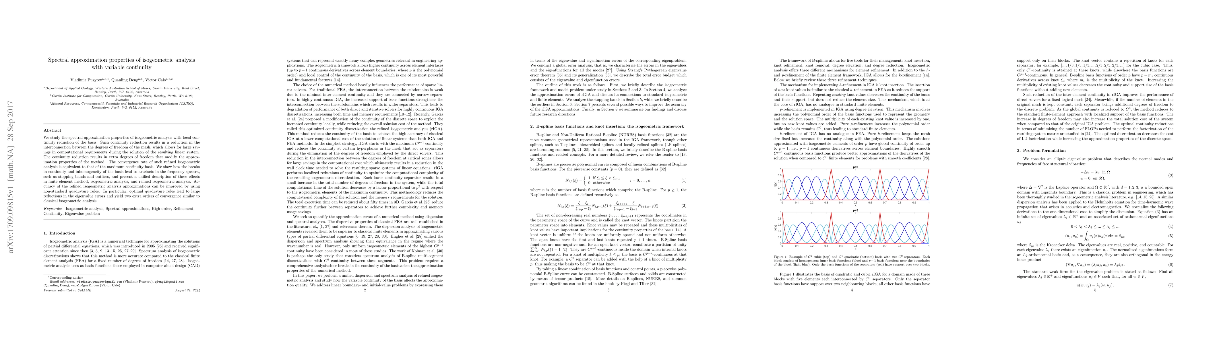 This paper investigates the spectral approximation properties of isogeometric analysis with reduced continuity, showing that it maintains convergence rates similar to the maximum continuity basis. The study highlights the impact of continuity reduction on computational efficiency and introduces methods to mitigate artefacts in frequency spectra, achieving significant improvements in accuracy through optimal quadrature rules.