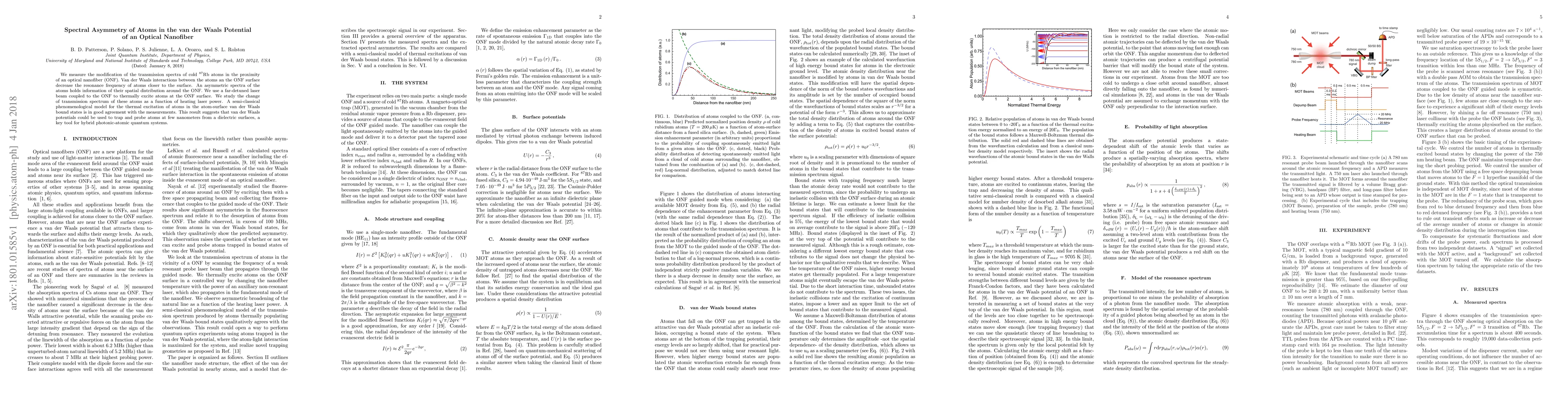 This paper measures the spectral asymmetry of cold $^{87}$Rb atoms near an optical nanofiber due to van der Waals interactions, revealing their spatial distribution. A semi-classical model accurately predicts the changes in transmission spectra with laser heating, indicating potential for trapping and probing atoms near dielectric surfaces.
