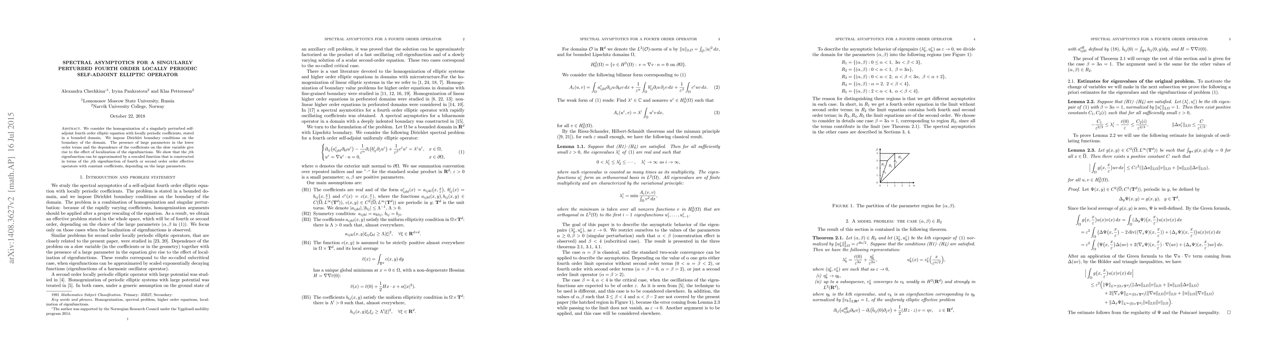 We consider the homogenization of a singularly perturbed self-adjoint fourth order elliptic equation with locally periodic coefficients, stated in a bounded domain. We impose Dirichlet boundary conditions on the boundary of the domain. The presence of large parameters in the lower order terms and the dependence of the coefficients on the slow variable give rise to the effect of localization of the eigenfunctions. We show that the $j$th eigenfunction can be approximated by a rescaled function that is constructed in terms of the $j$th eigenfunction of fourth or second order order effective operators with constant coefficients, depending on the large parameters.