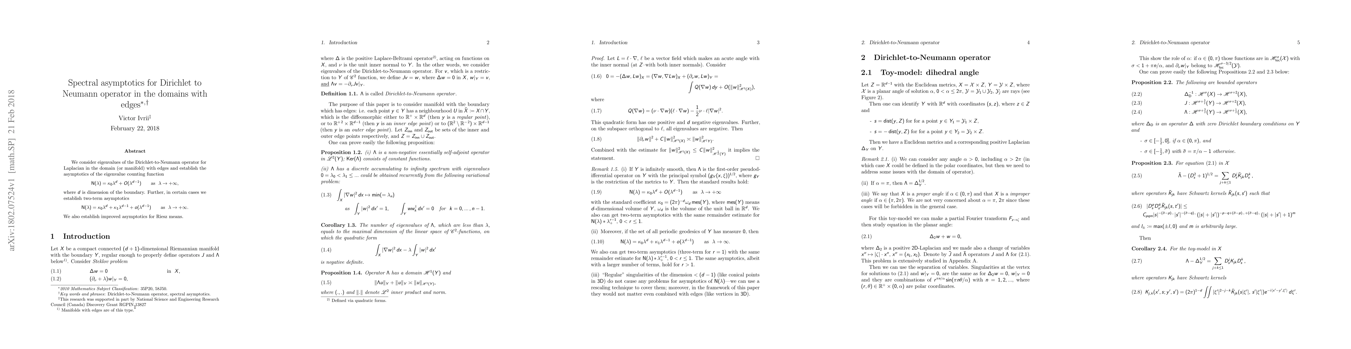 We consider eigenvalues of the Dirichlet-to-Neumann operator for Laplacian in the domain (or manifold) with edges and establish the asymptotics of the eigenvalue counting function \begin{equation*} \mathsf{N}(\lambda)= \kappa_0\lambda^d +O(\lambda^{d-1})\qquad \text{as}\ \ \lambda\to+\infty, \end{equation*} where $d$ is dimension of the boundary. Further, in certain cases we establish two-term asymptotics \begin{equation*} \mathsf{N}(\lambda)= \kappa_0\lambda^d+\kappa_1\lambda^{d-1}+o(\lambda^{d-1})\qquad \text{as}\ \ \lambda\to+\infty. \end{equation*} We also establish improved asymptotics for Riesz means.