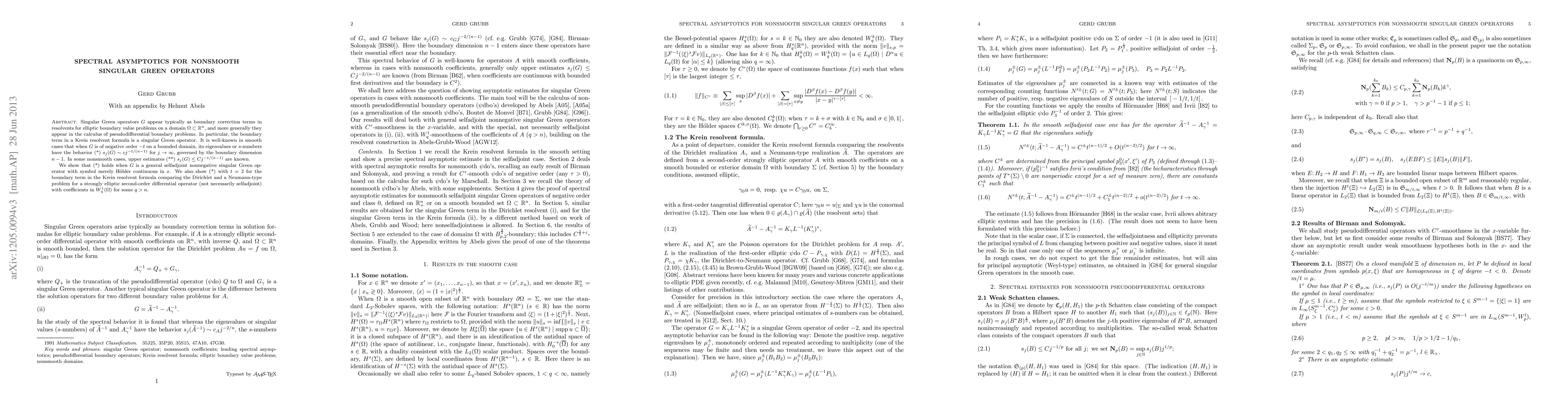 Singular Green operators G appear typically as boundary correction terms in resolvents for elliptic boundary value problems on a domain \Omega \subset R^n, and more generally they appear in the calculus of pseudodifferential boundary problems. In particular, the boundary term in a Krein resolvent formula is a singular Green operator. It is well-known in smooth cases that when G is of negative order -t on a bounded domain, its eigenvalues or s-numbers have the behavior (*) s_j(G) \sim c j^{-t/(n-1)} for j\to \infty, governed by the boundary dimension n-1. In some nonsmooth cases, upper estimates (**) s_j(G) \le Cj^{-t/(n-1)} are known. We show that (*) holds when G is a general selfadjoint nonnegative singular Green operator with symbol merely H\"older continuous in x. We also show (*) with t=2 for the boundary term in the Krein resolvent formula comparing the Dirichlet and a Neumann-type problem for a strongly elliptic second-order differential operator (not necessarily selfadjoint) with coefficients in W^1_p(\Omega) for some p>n.