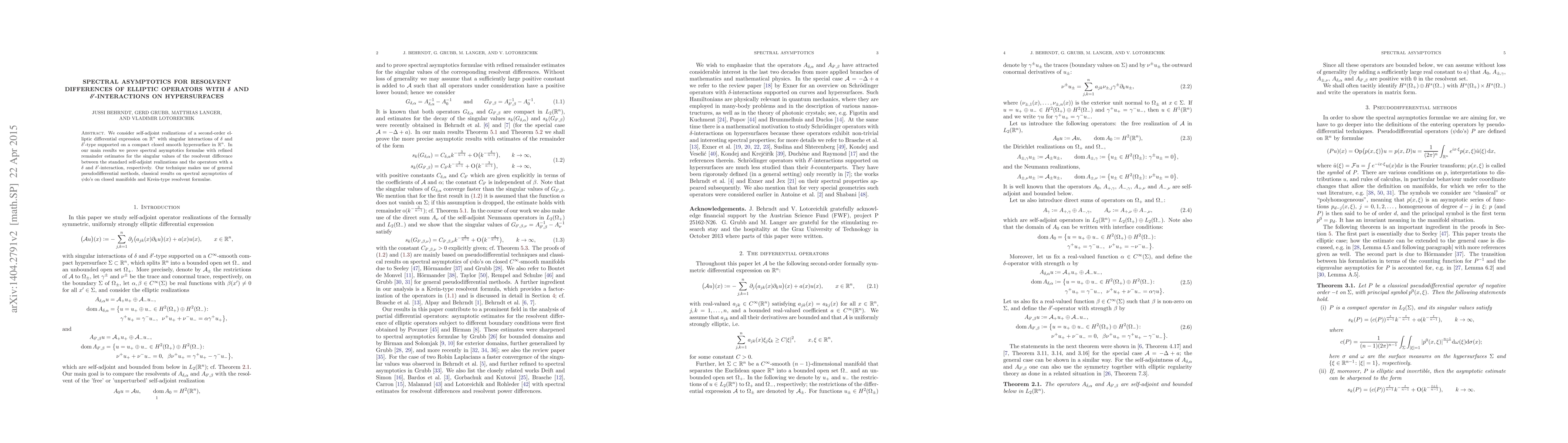This paper investigates spectral asymptotics for resolvent differences of elliptic operators with $\delta$ and $\delta^\prime$-interactions on hypersurfaces. The authors derive refined asymptotic formulae and remainder estimates using pseudodifferential methods and Krein-type resolvent techniques.