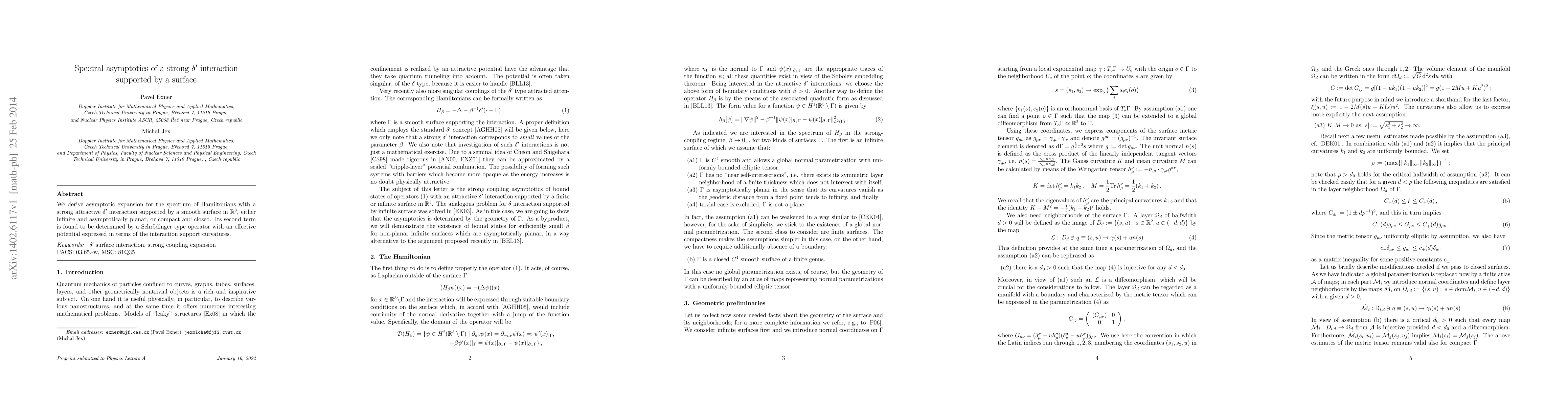 This paper derives an asymptotic expansion for the spectrum of Hamiltonians featuring a strong $\delta'$ interaction on a smooth surface in $\R^3$, revealing that the second term of the expansion is governed by a Schrödinger operator with an effective potential linked to the curvature of the interaction support.