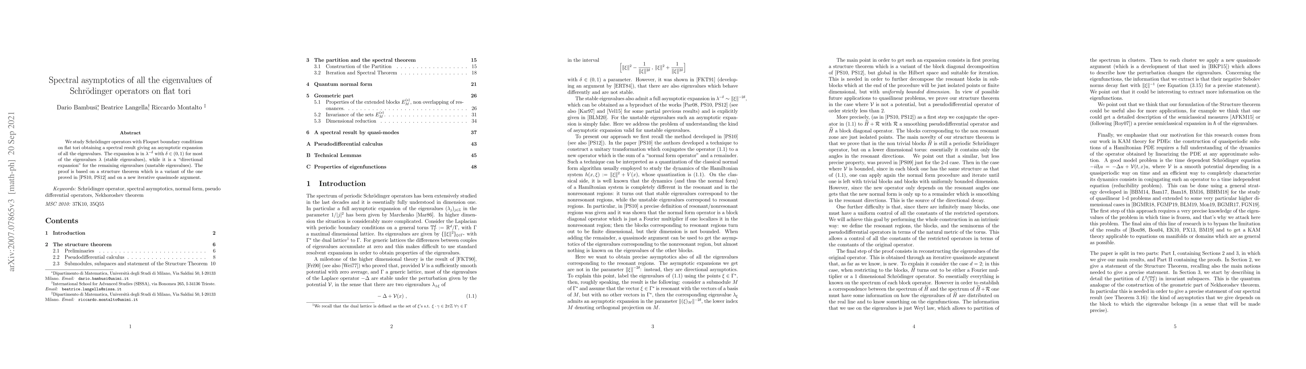This research paper studies Schrödinger operators on flat tori with Floquet boundary conditions, finding an asymptotic expansion of all eigenvalues in a specific range, while others exhibit directional expansions.
