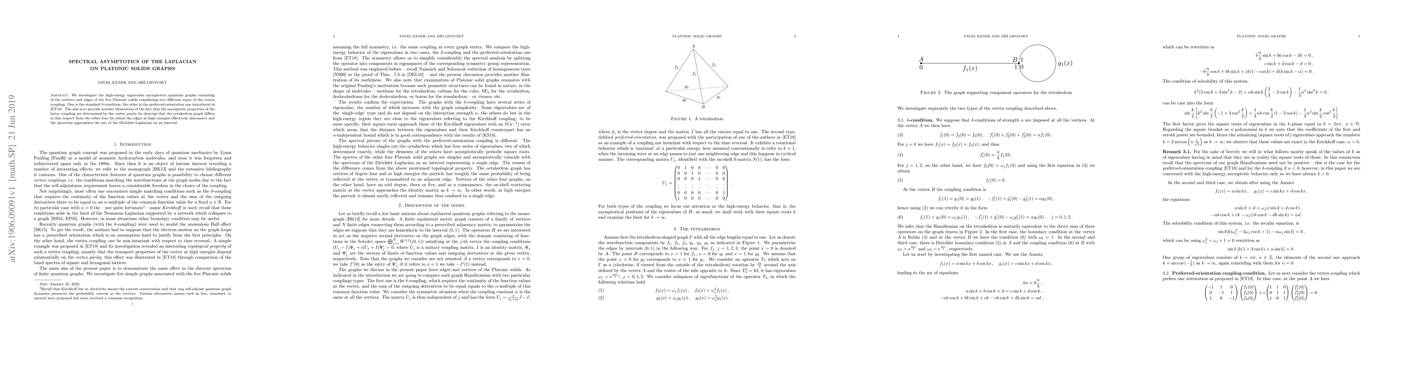 We investigate the high-energy eigenvalue asymptotics quantum graphs consisting of the vertices and edges of the five Platonic solids considering two different types of the vertex coupling. One is the standard $\delta$-condition, the other is the preferred-orientation one introduced in [ET18]. The aim is to provide another illustration of the fact that the asymptotic properties of the latter coupling are determined by the vertex parity by showing that the octahedron graph differs in this respect from the other four for which the edges at high energies effectively disconnect and the spectrum approaches the one of the Dirichlet Laplacian on an interval.
