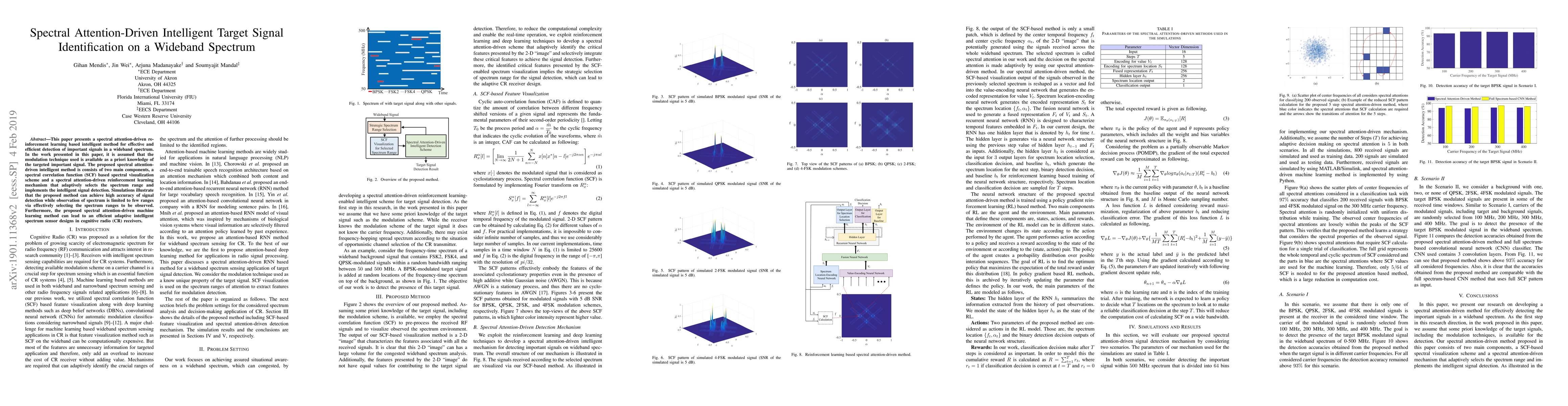 This paper presents a spectral attention-driven reinforcement learning based intelligent method for effective and efficient detection of important signals in a wideband spectrum. In the work presented in this paper, it is assumed that the modulation technique used is available as a priori knowledge of the targeted important signal. The proposed spectral attention-driven intelligent method is consists of two main components, a spectral correlation function (SCF) based spectral visualization scheme and a spectral attention-driven reinforcement learning mechanism that adaptively selects the spectrum range and implements the intelligent signal detection. Simulations illustrate that the proposed method can achieve high accuracy of signal detection while observation of spectrum is limited to few ranges via effectively selecting the spectrum ranges to be observed. Furthermore, the proposed spectral attention-driven machine learning method can lead to an efficient adaptive intelligent spectrum sensor designs in cognitive radio (CR) receivers.