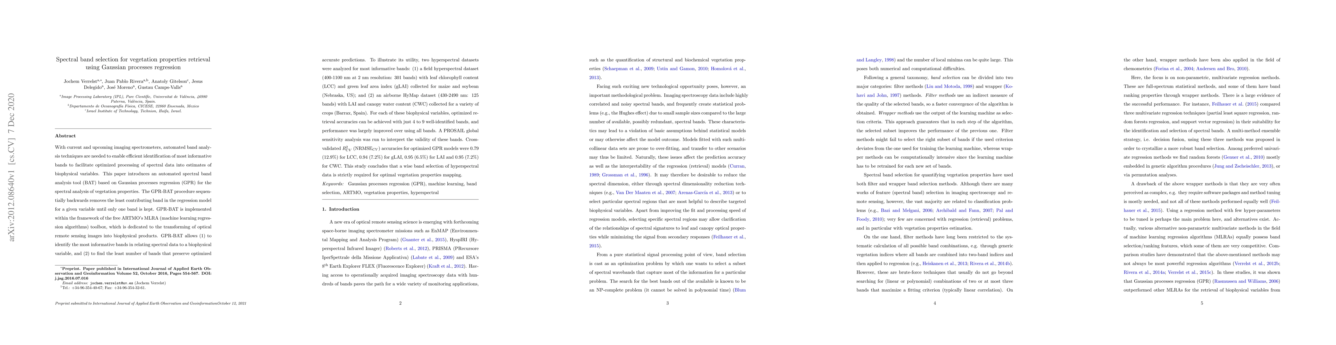 A new tool called GPR-BAT uses Gaussian processes regression to automatically select the most informative bands in hyperspectral data for vegetation property retrieval, improving accuracy and efficiency.