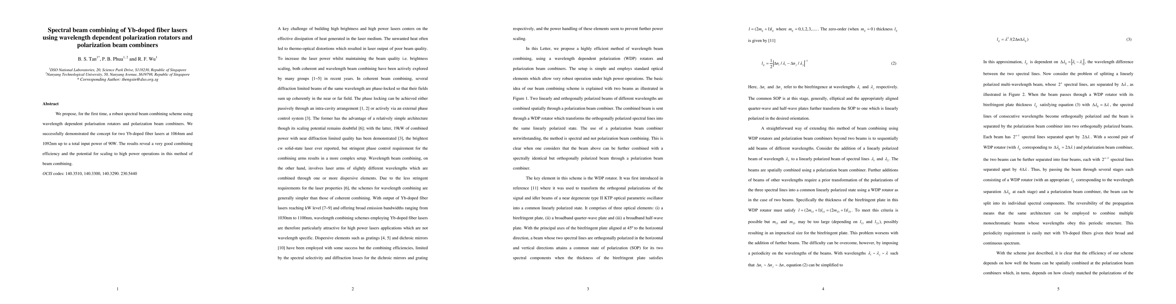 We propose a robust spectral beam combining scheme using wavelength dependent polarisation rotators and polarization beam combiners. We successfully demonstrated the concept for two Yb-doped fiber lasers at 1064nm and 1092nm up to a total input power of 90W. The results reveal a very good combining efficiency and the potential for scaling to high power operations in this method of beam combining.