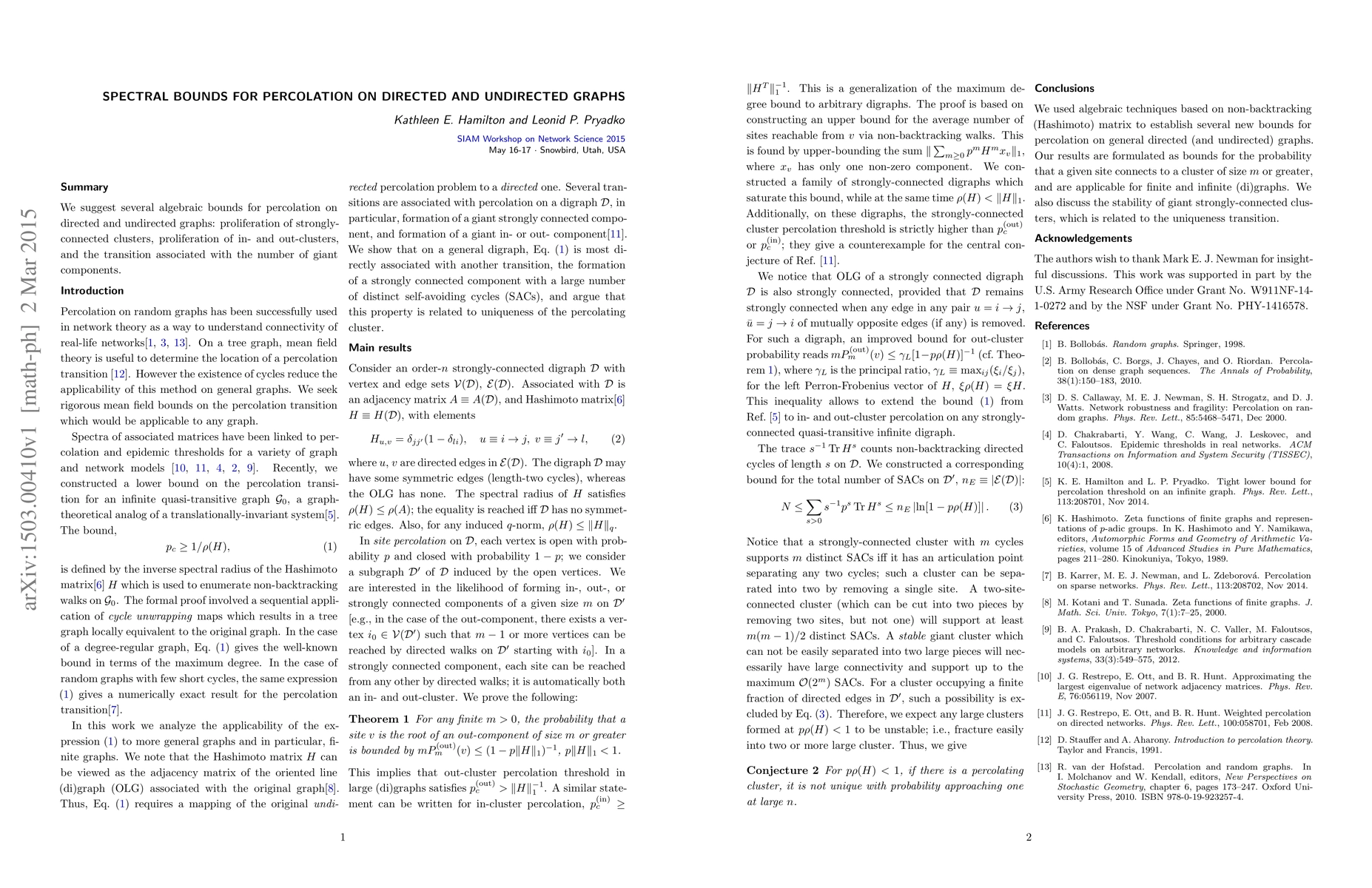 Summary: This paper provides algebraic bounds for percolation on both directed and undirected graphs, focusing on the proliferation of strongly-connected clusters, in- and out-clusters, and the transition related to the emergence of giant components.