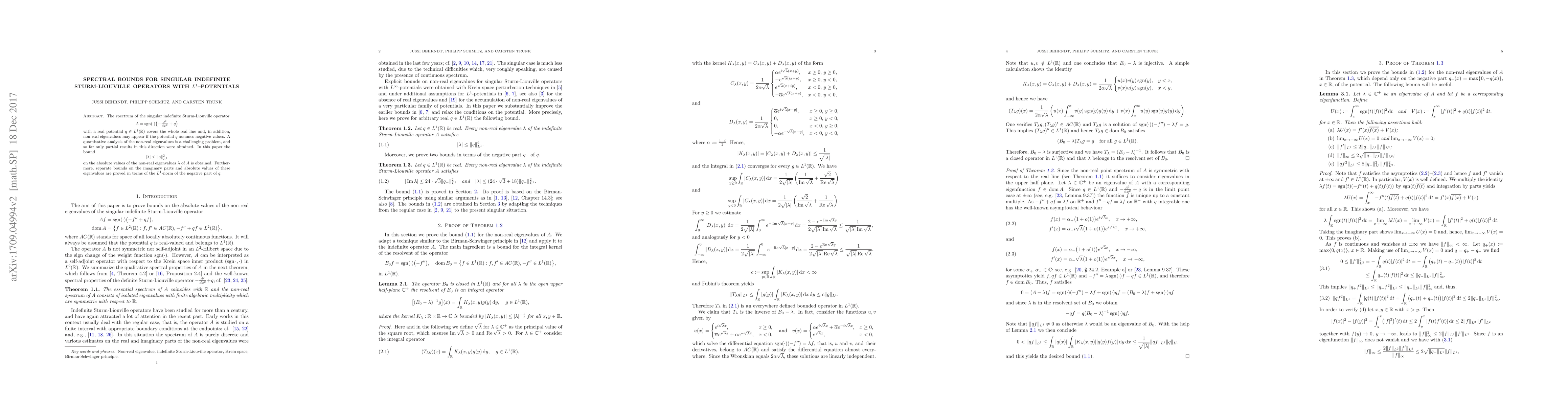 This paper investigates the spectrum of singular indefinite Sturm-Liouville operators with $L^1$ potentials, proving that non-real eigenvalues exist when potentials assume negative values. It establishes bounds on the absolute values of these eigenvalues, specifically $|\lambda|\leq |q|_{L^1}^2$, and provides separate bounds on their imaginary parts and absolute values in terms of the negative part of the $L^1$ potential.