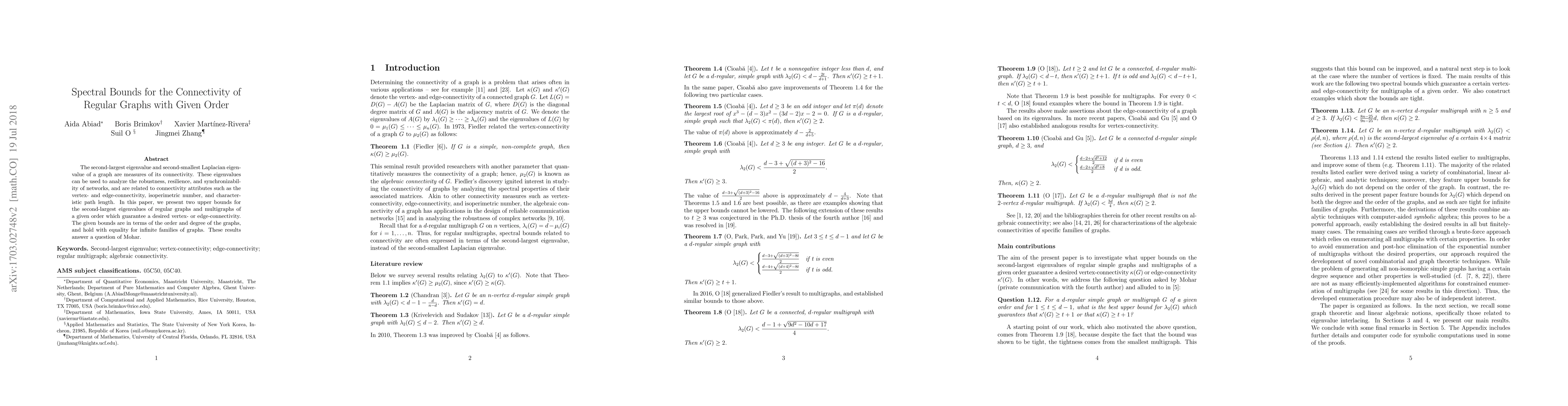 Researchers established upper bounds for a graph's second-largest eigenvalue to ensure desired vertex- or edge-connectivity, providing insights into network robustness and resilience.