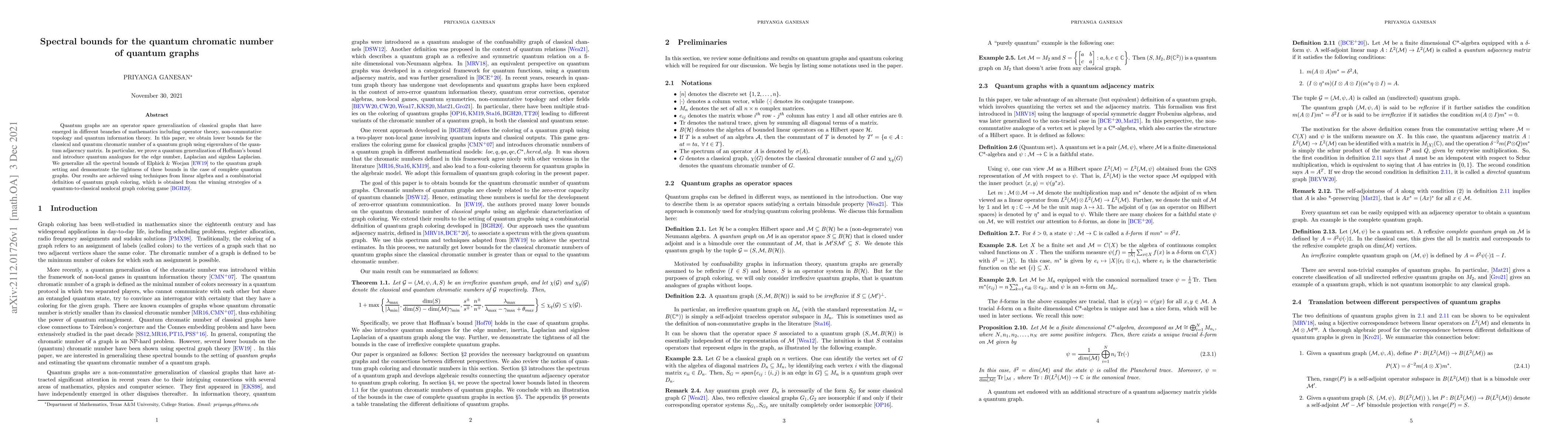 This paper establishes lower bounds for the classical and quantum chromatic numbers of quantum graphs using eigenvalues of the quantum adjacency matrix, generalizing Hoffman's bound and introducing quantum analogues for various graph parameters. The results are demonstrated to be tight for complete quantum graphs.