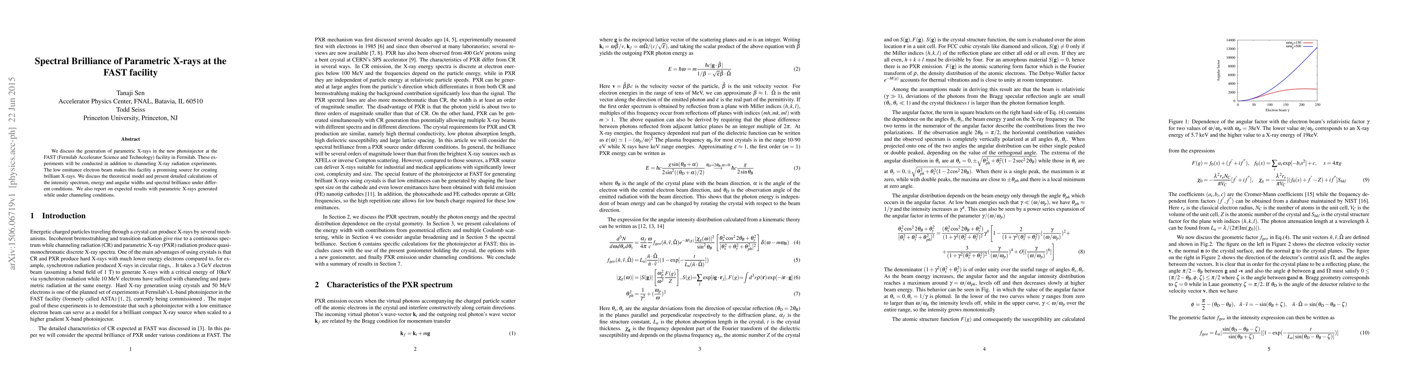 We discuss the generation of parametric X-rays in the new photoinjector at the FAST (Fermilab Accelerator Science and Technology) facility in Fermilab. These experiments will be conducted in addition to channeling X-ray radiation experiments. The low emittance electron beam makes this facility a promising source for creating brilliant X-rays. We discuss the theoretical model and present detailed calculations of the intensity spectrum, energy and angular widths and spectral brilliance under different conditions. We also report on expected results with parametric X-rays generated while under channeling conditions.