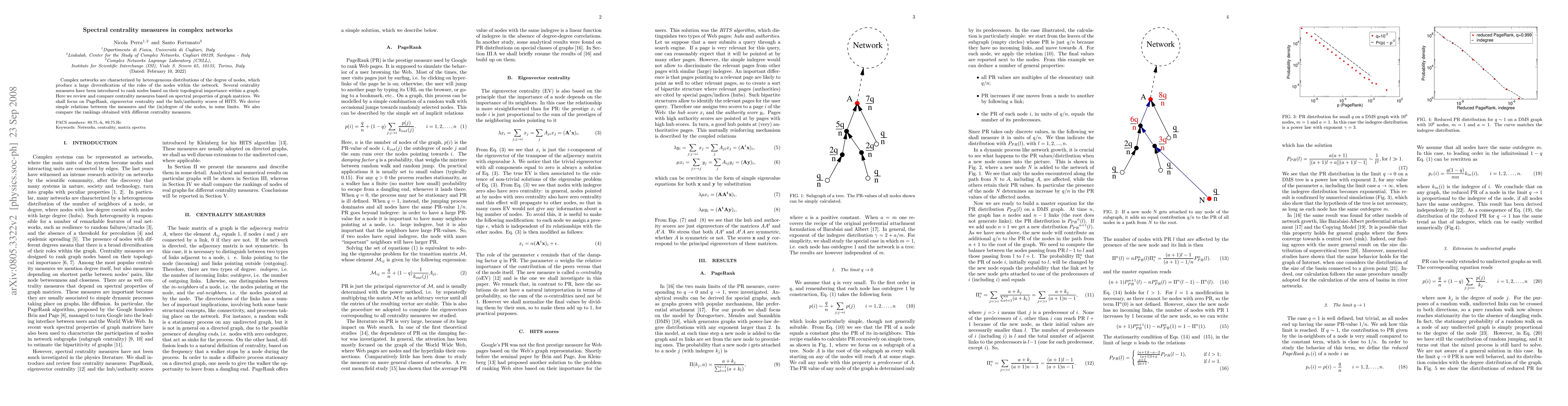 This paper reviews and compares centrality measures—PageRank, eigenvector centrality, and HITS—based on spectral properties of graph matrices, analyzing their rankings and relationships with the degree of nodes in complex networks. The study derives simple relations between these measures and node degrees, highlighting their topological importance.