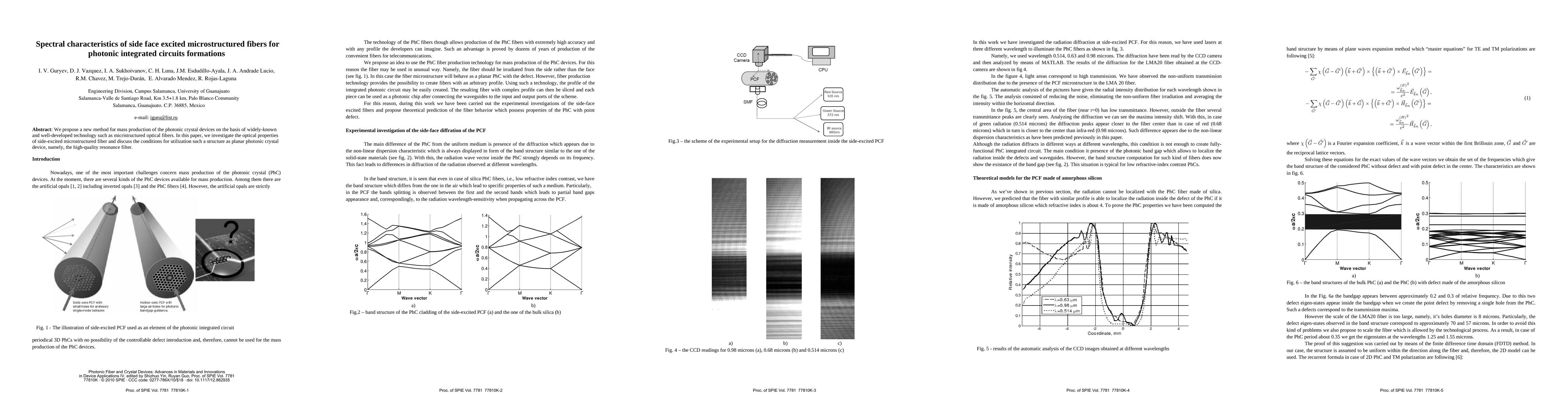 This paper proposes a method for mass production of photonic crystal devices using microstructured optical fibers, focusing on the optical properties of side-excited microstructured fibers and their potential as high-quality resonance filters for photonic integrated circuits.