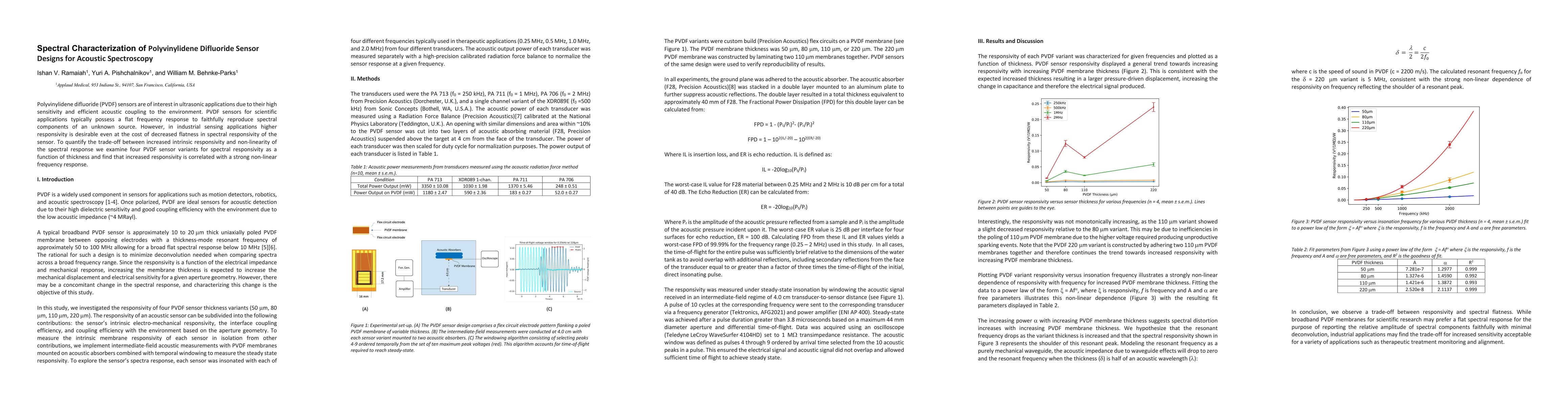 Polyvinylidene difluoride (PVDF) sensors are of interest to ultrasonic applications due to their high sensitivity and efficient acoustic coupling to the environment. PVDF sensors for scientific applications typically possess a flat frequency response to faithfully reproduce spectral components of an unknown source. However, in industrial sensing applications higher responsivity is desirable even at the cost of decreased flatness in the spectral responsivity. To better understand the trade-offs between intrinsic responsivity and spectral response we examine four PVDF sensor variants for spectral responsivity as a function of thickness and find that increased responsivity is correlated with a strong non-linear frequency dependence.