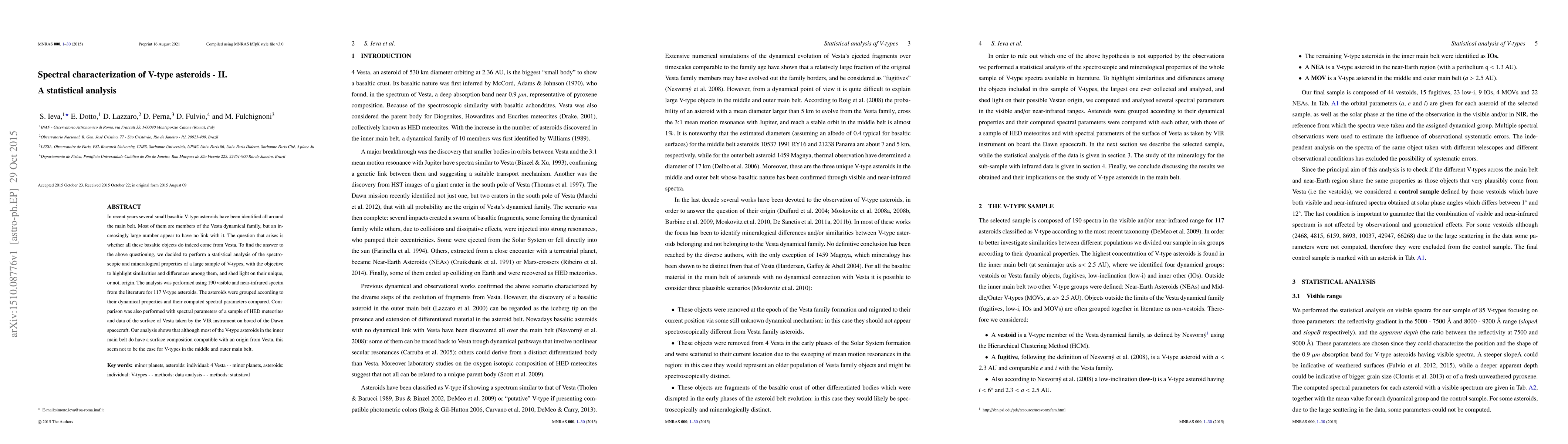 This paper conducts a statistical analysis of 190 spectra from 117 V-type asteroids to determine their mineralogical and spectral similarities, comparing them to HED meteorites and Vesta's surface. Results suggest that while inner belt V-types likely originate from Vesta, those in the middle and outer belts do not share this origin.