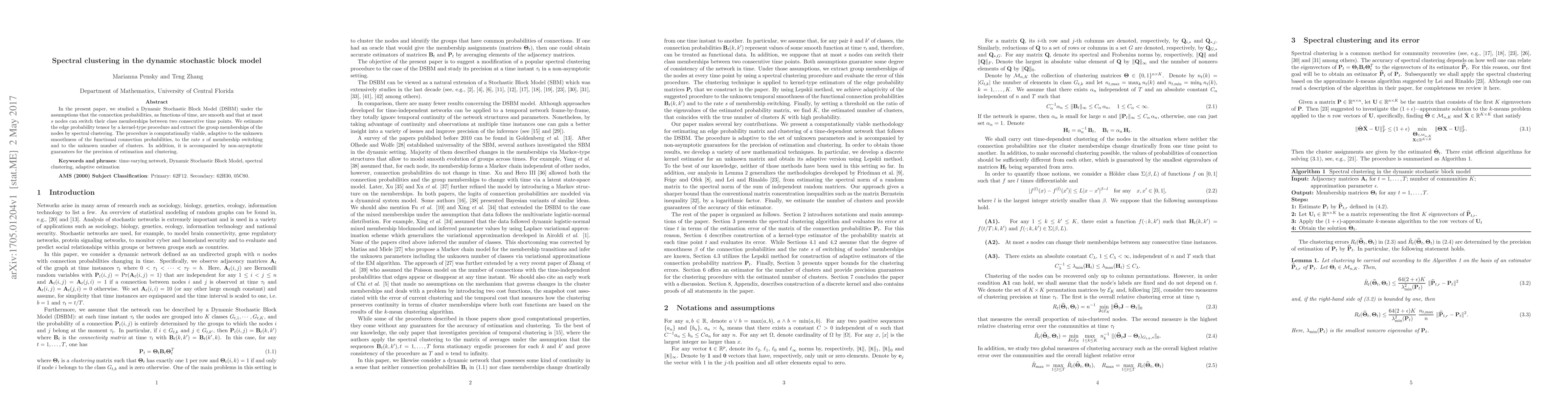 This paper explores a Dynamic Stochastic Block Model where connection probabilities change smoothly over time, with at most $s$ nodes changing class memberships. It employs spectral clustering and a kernel-type procedure for estimating the edge probability tensor, offering computational feasibility and non-asymptotic guarantees for precision.