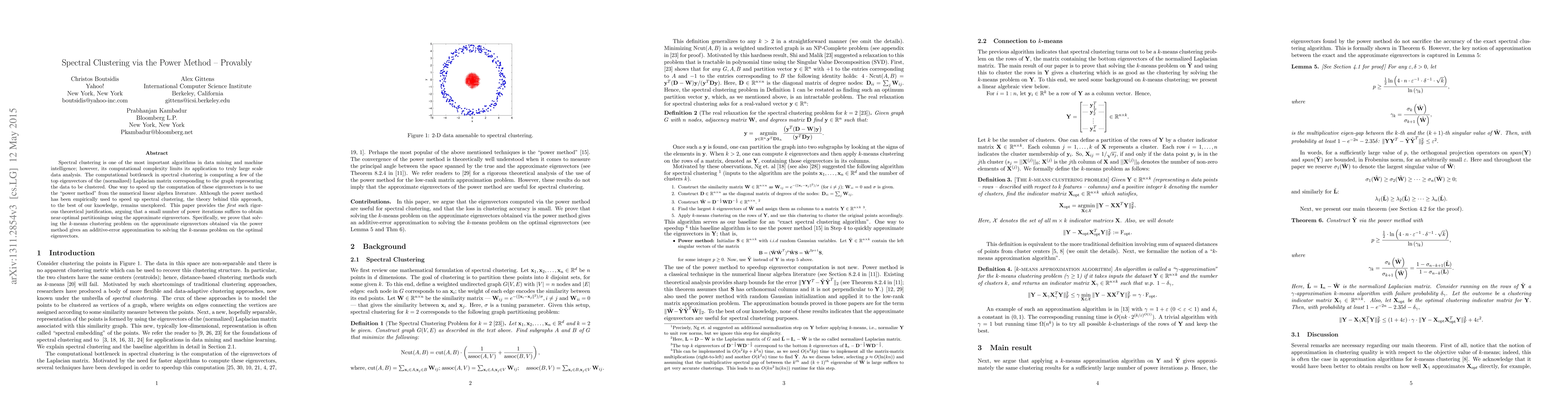 This paper rigorously justifies using the power method to speed up spectral clustering, proving that a few power iterations yield near-optimal clustering results by approximating the top eigenvectors of the Laplacian matrix. It establishes an additive-error approximation for $k$-means clustering based on these approximate eigenvectors.
