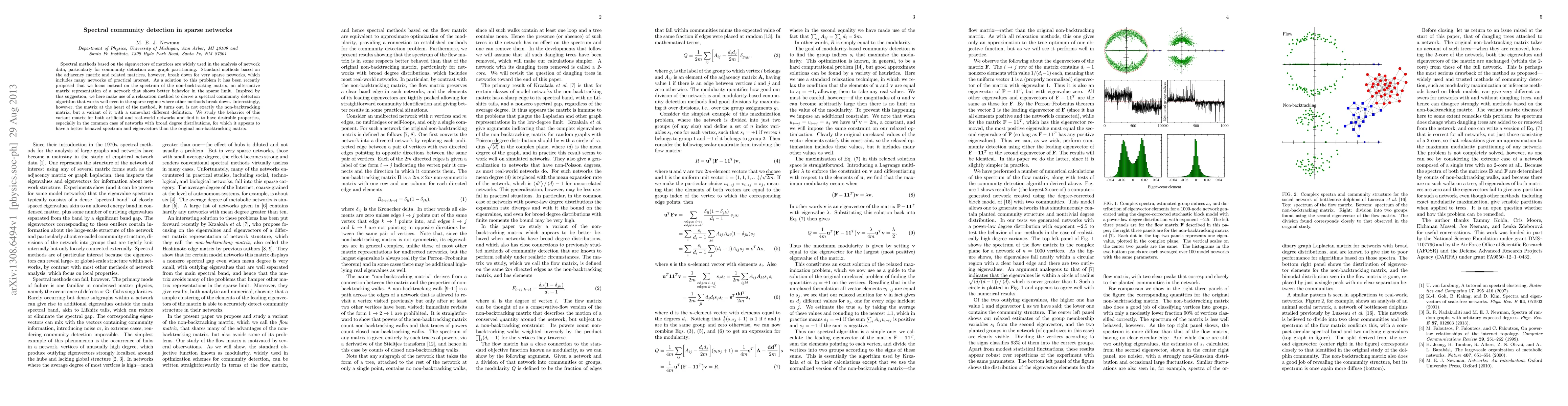 This paper proposes a spectral community detection algorithm based on a variant of the non-backtracking matrix, which performs well in sparse networks where traditional methods fail. The new matrix variant shows improved spectral behavior and better community detection results, especially in networks with broad degree distributions.