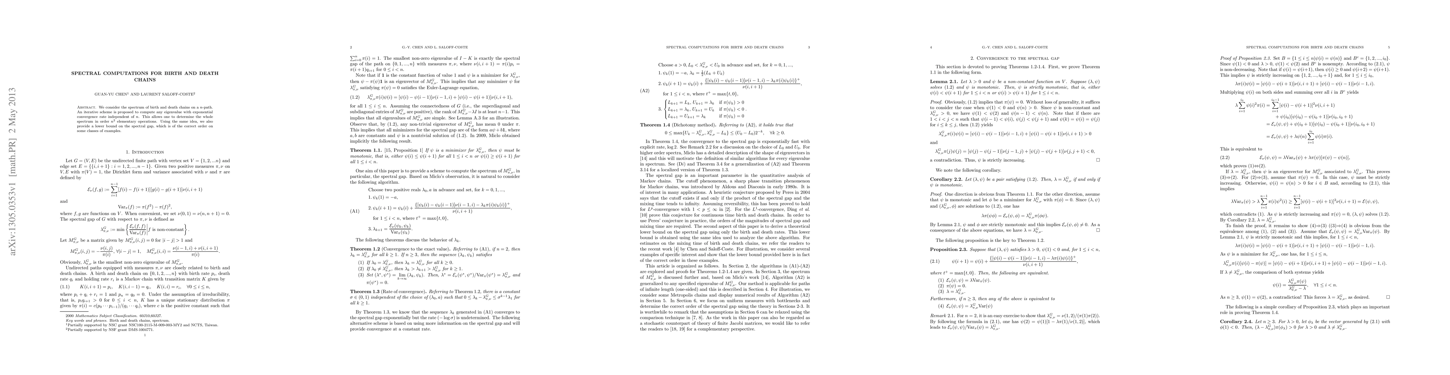 We consider the spectrum of birth and death chains on a $n$-path. An iterative scheme is proposed to compute any eigenvalue with exponential convergence rate independent of $n$. This allows one to determine the whole spectrum in order $n^2$ elementary operations. Using the same idea, we also provide a lower bound on the spectral gap, which is of the correct order on some classes of examples.
