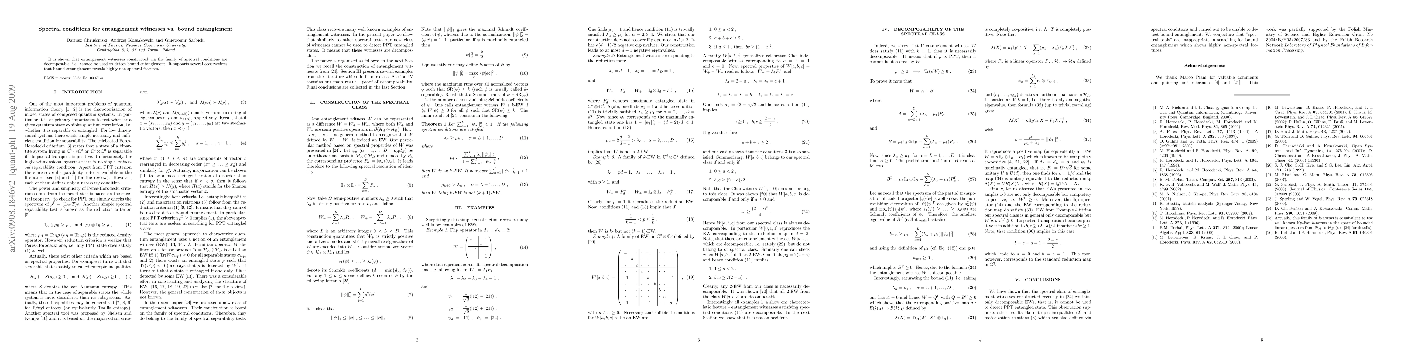 Summary: This paper demonstrates that entanglement witnesses based on spectral conditions are decomposable and thus ineffective at detecting bound entanglement, reinforcing the notion that bound entanglement involves non-spectral characteristics.