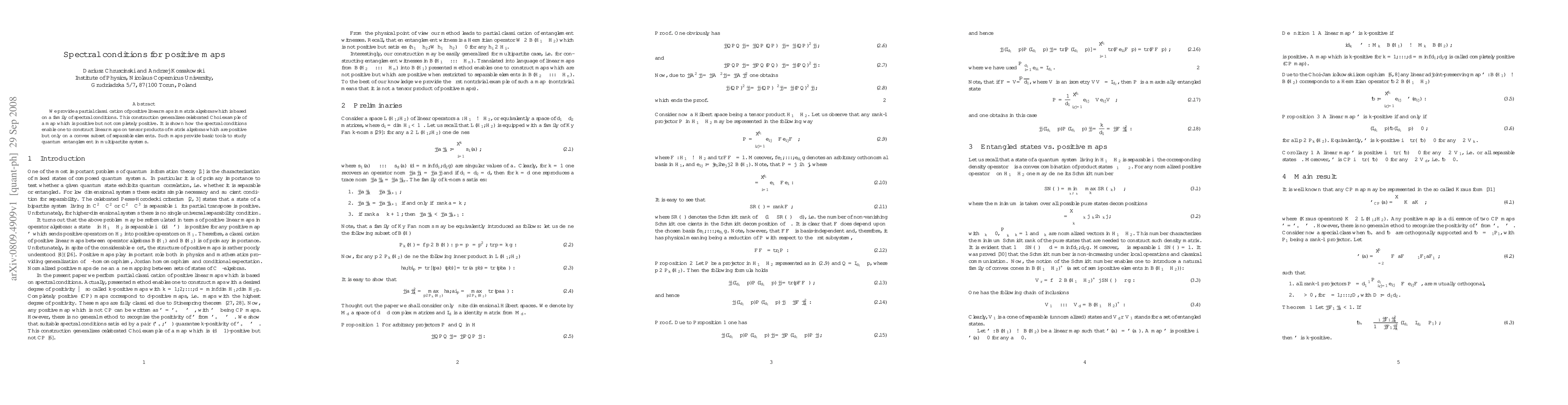This paper classifies positive linear maps in matrix algebras using spectral conditions, generalizing the Choi example of a positive but not completely positive map. It constructs maps on tensor products that are positive but only for separable elements, serving as fundamental tools for studying quantum entanglement in multipartite systems.