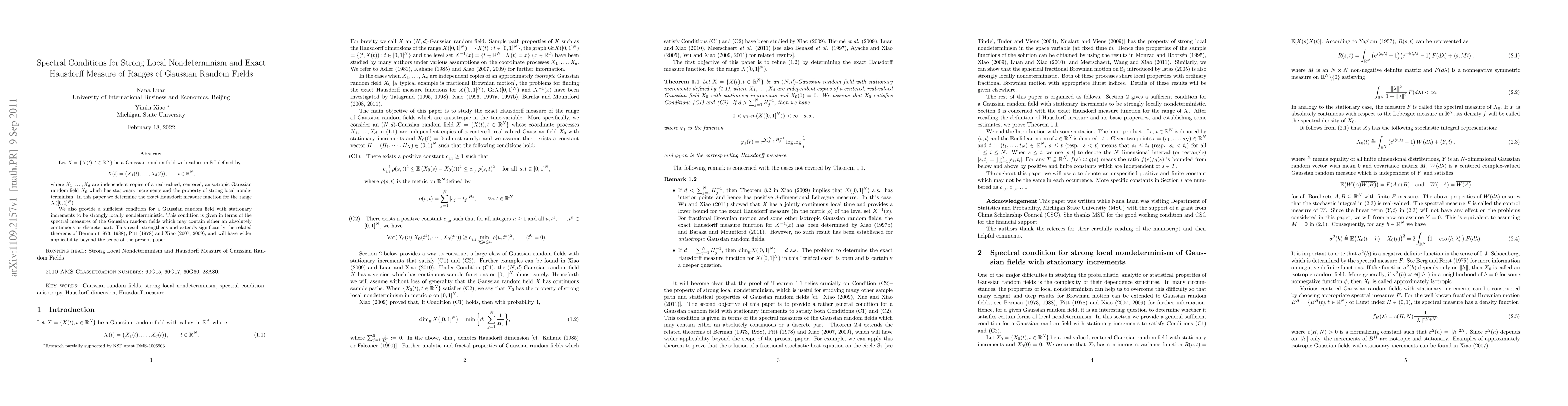 This paper determines the exact Hausdorff measure for the range of a Gaussian random field with strong local nondeterminism and provides a spectral condition for such nondeterminism, extending previous results by Berman, Pitt, and Xiao.