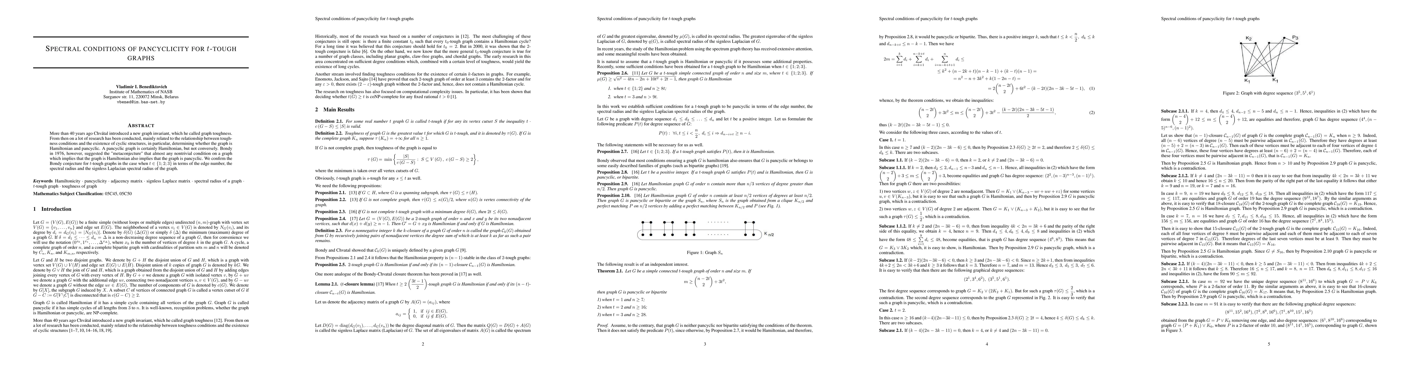 The paper confirms Bondy's conjecture for t-tough graphs with t in {1, 2, 3} by establishing spectral conditions related to edge number, spectral radius, and signless Laplacian spectral radius that ensure pancyclicity, a stronger condition than Hamiltonian cycles.