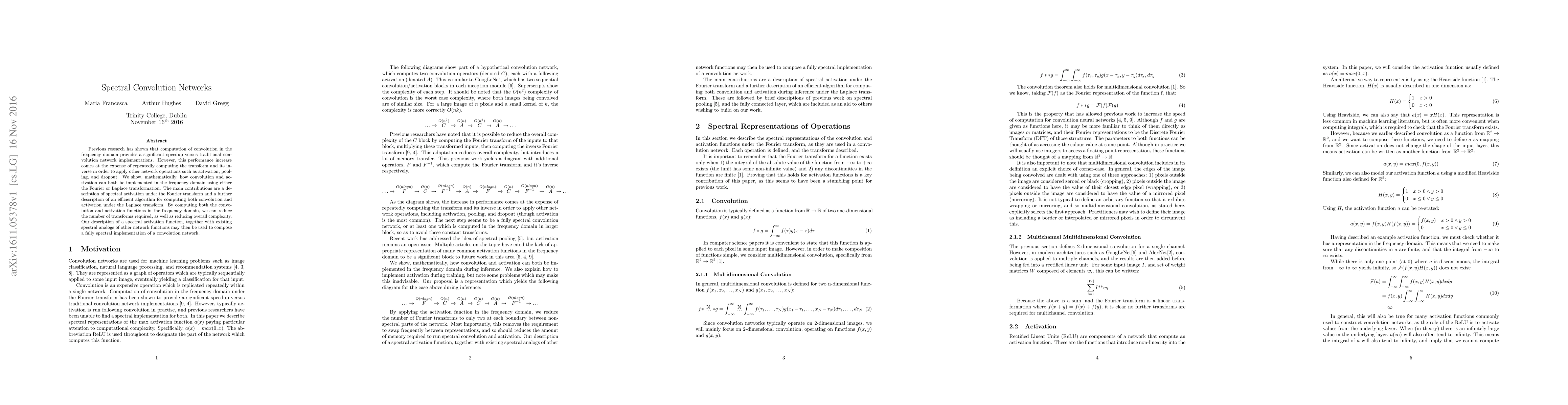 This paper proposes a spectral convolution network that computes convolution and activation functions in the frequency domain using Fourier or Laplace transformations, reducing the number of required transforms and overall complexity compared to traditional methods. The key contributions include the description of spectral activation under the Fourier transform and an efficient algorithm for the Laplace transform.