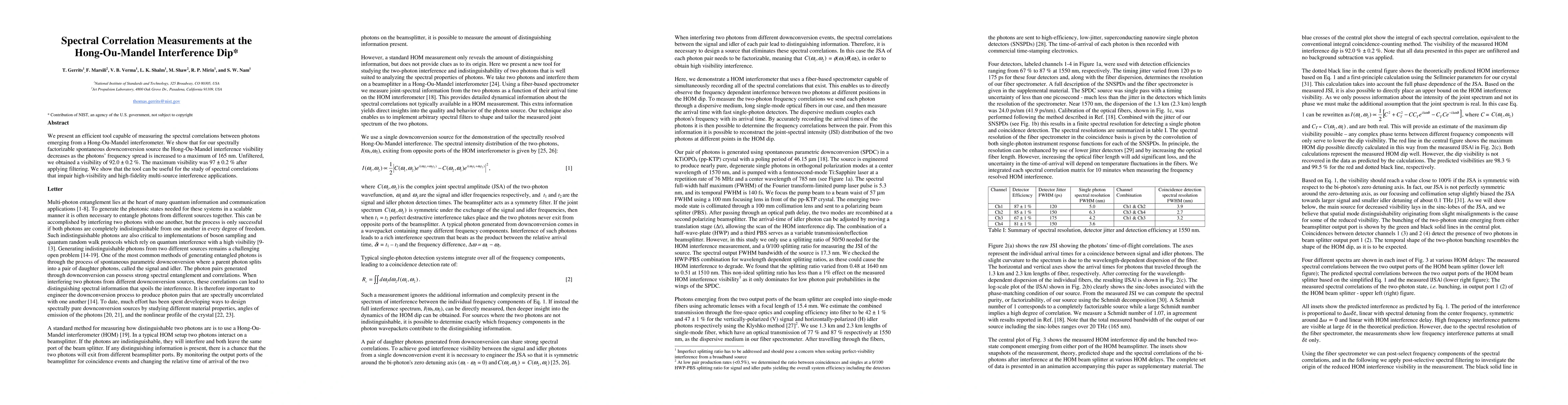 This paper describes a new method for measuring spectral correlations in photons from a Hong-Ou-Mandel interferometer, showing that spectral broadening reduces interference visibility. The best visibility achieved, 97 ± 0.2%, highlights the potential of this tool for high-fidelity multi-source interference studies.