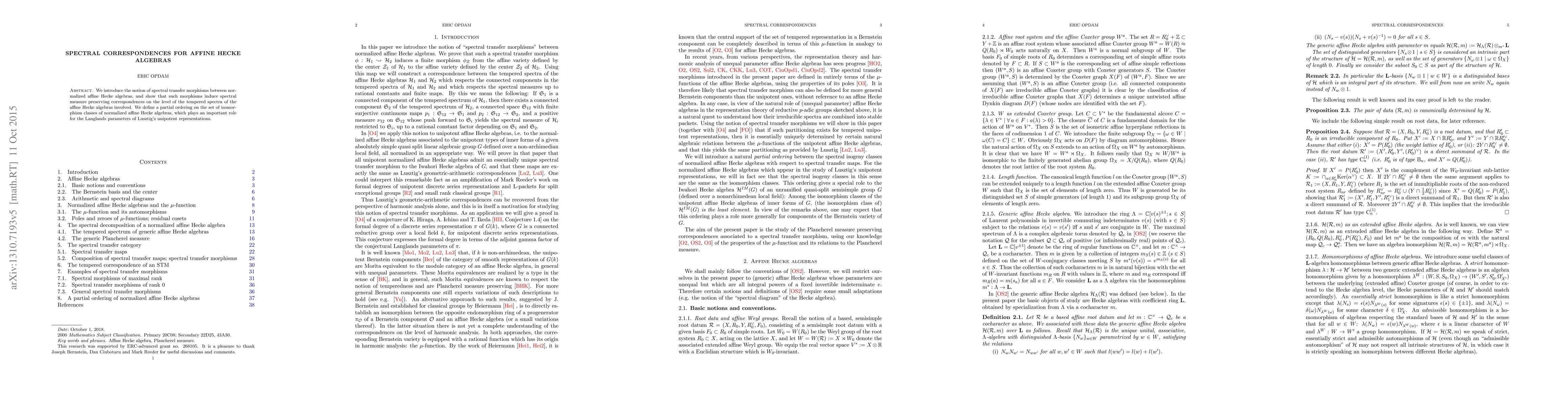 This paper introduces spectral transfer morphisms between normalized affine Hecke algebras and demonstrates their role in preserving spectral measures on the tempered spectra. It also defines a partial ordering on these algebras, crucial for understanding Langlands parameters in Lusztig's unipotent representations.