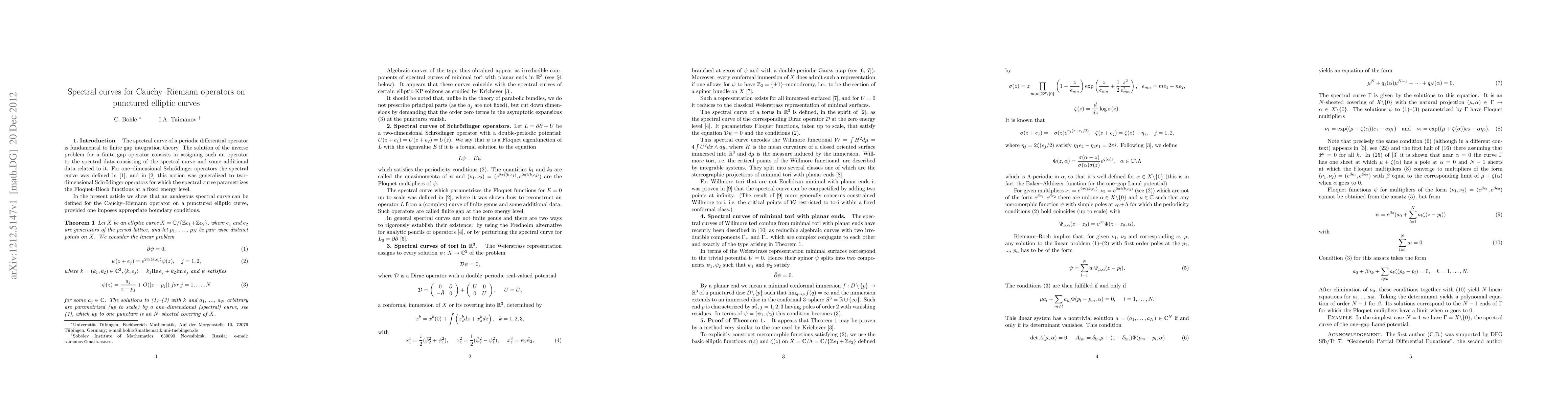 This paper defines spectral curves for Cauchy-Riemann operators on punctured elliptic curves under specific boundary conditions. These algebraic curves emerge as components of spectral curves for minimal tori with planar ends in 3D space and are linked to elliptic KP solitons studied by Krichever.
