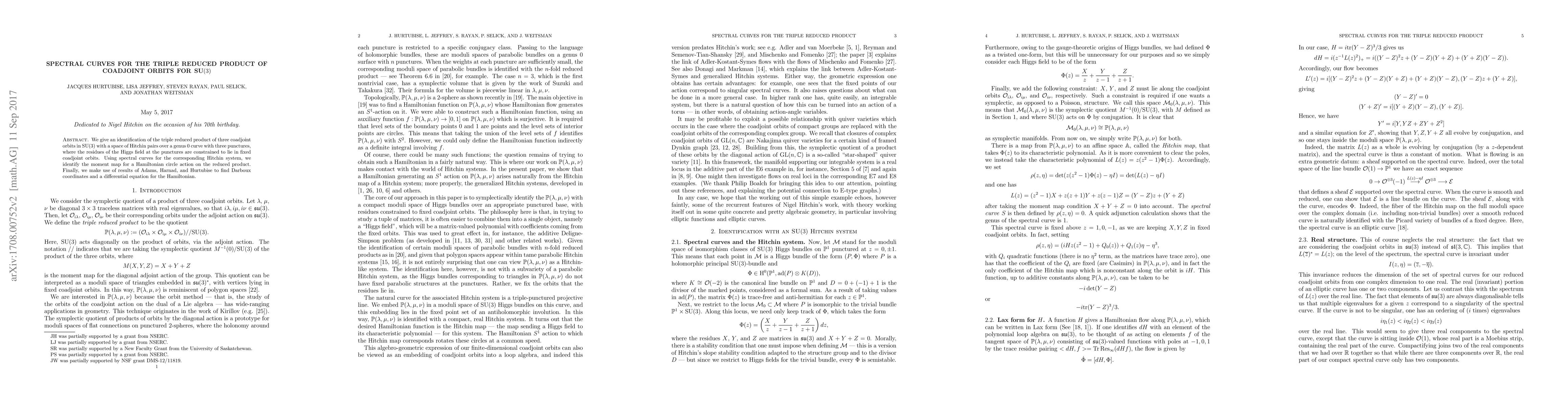 Researchers identify a connection between coadjoint orbits in SU(3) and Hitchin pairs over a curve with three punctures, providing new insights into Hamiltonian circle actions and Darboux coordinates.