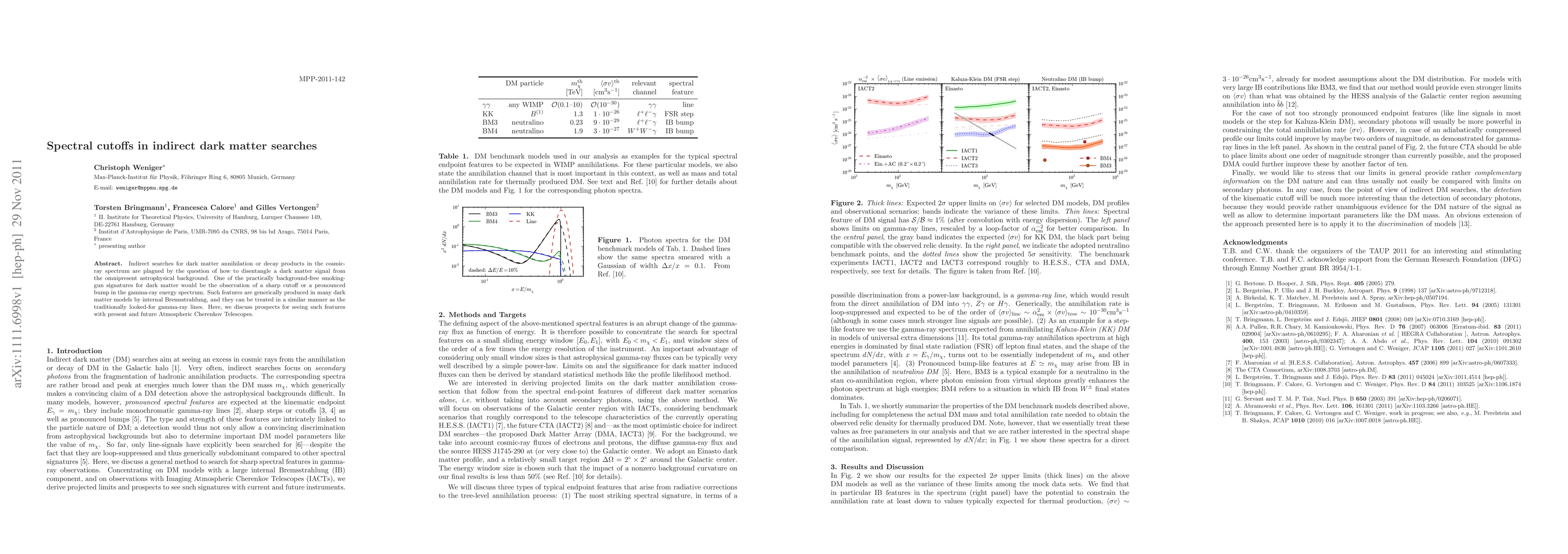 This paper explores the potential of detecting sharp spectral cutoffs in gamma-ray energy spectra as a signature of dark matter annihilation or decay, using Atmospheric Cherenkov Telescopes. It assesses how these features can help distinguish dark matter signals from astrophysical backgrounds.