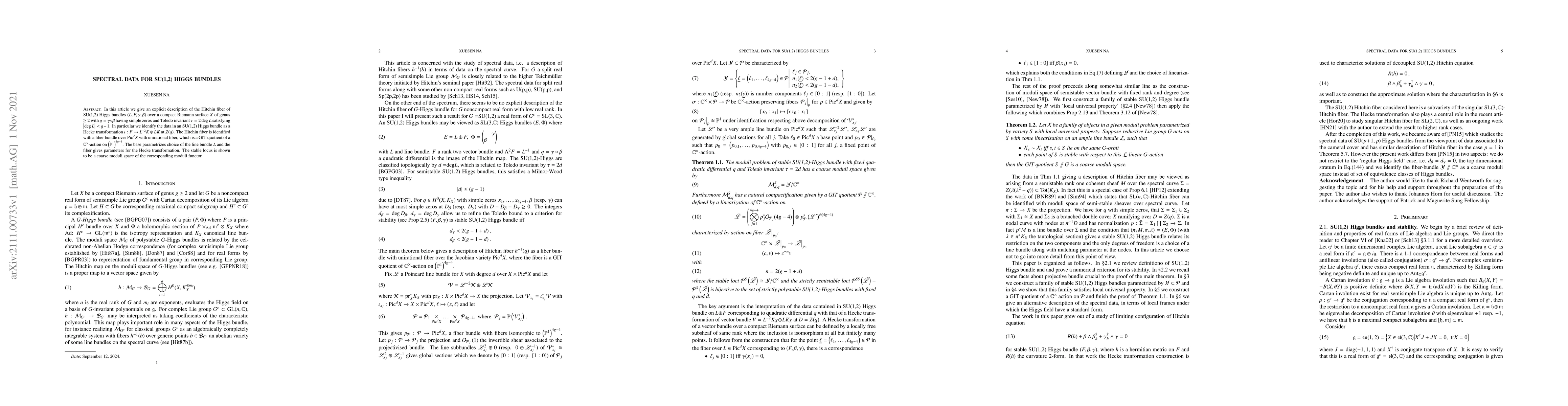 This paper provides an explicit description of the Hitchin fiber for SU(1,2) Higgs bundles over a compact Riemann surface, identifying the bundle's data through a Hecke transformation and demonstrating its unirational fiber structure. The stable locus is shown to be a coarse moduli space for the corresponding moduli functor.